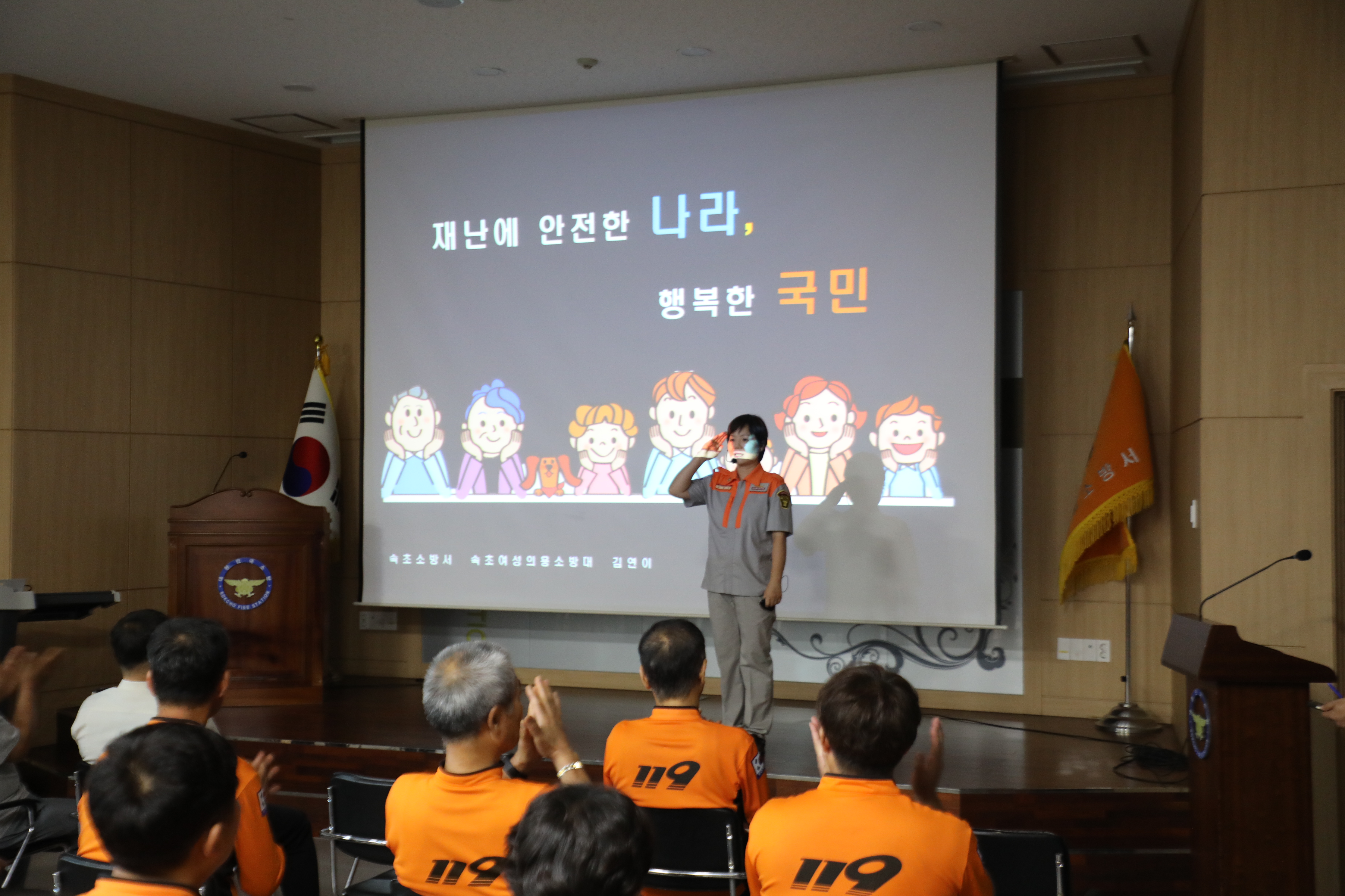 이날 시연회에선 김재석 서장과 본서 소방공무원, 각 의용소방대장이 참석한 가운데 김연이 의용소방대원이 ‘화재발생! 이것만 기억하세요!’를 주제로 화재 시 초기대응 요령에 대해 발표를 진행했다.