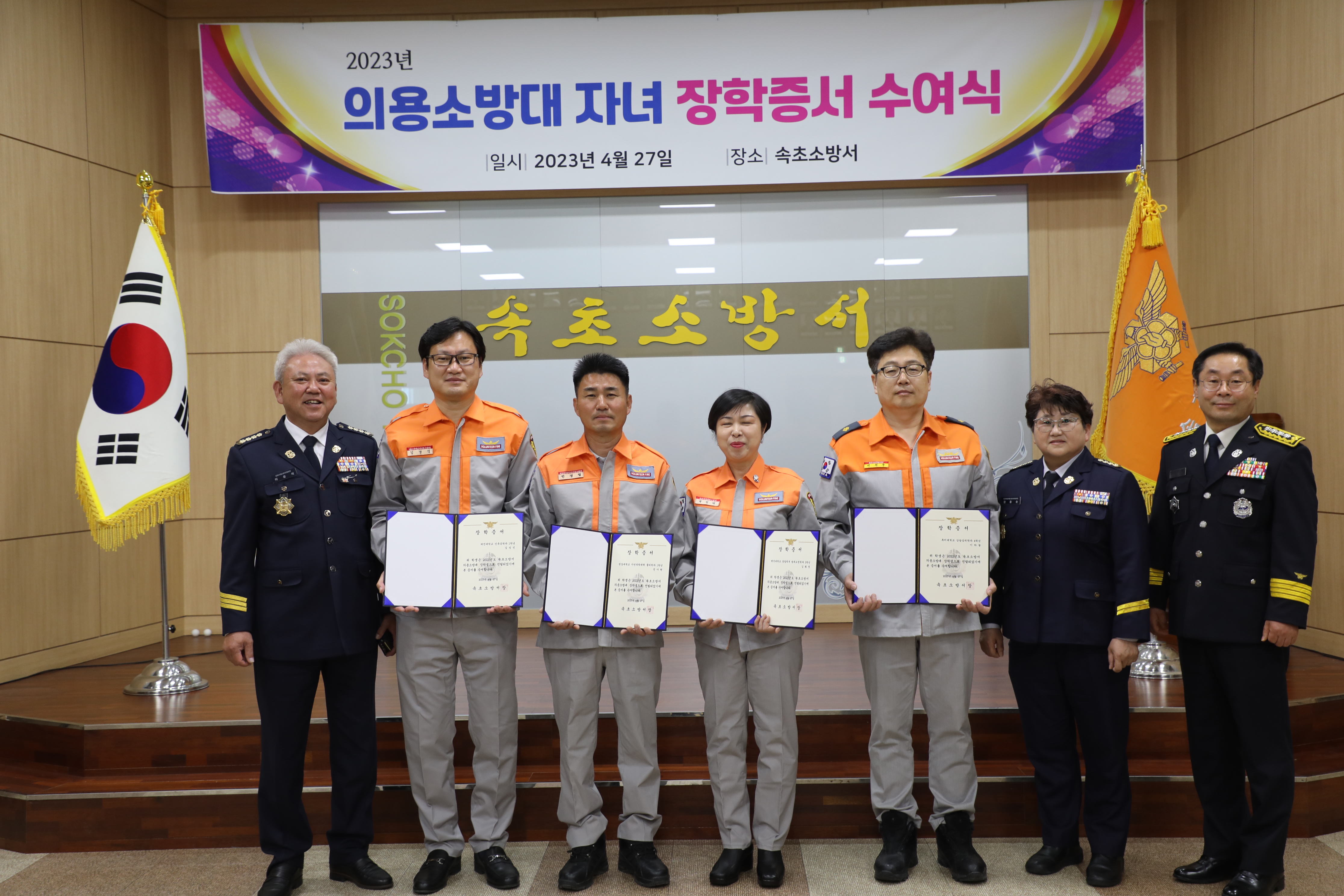 장상훈 속초소방서장은 “ 지역 안전을 위해 묵묵히 수행해 온 대원들의 노고에 감사드리며, 장학생들은 나라에 기여하는 휼륭한 인재가 되어주길 바란다. ” 고 전했다.
