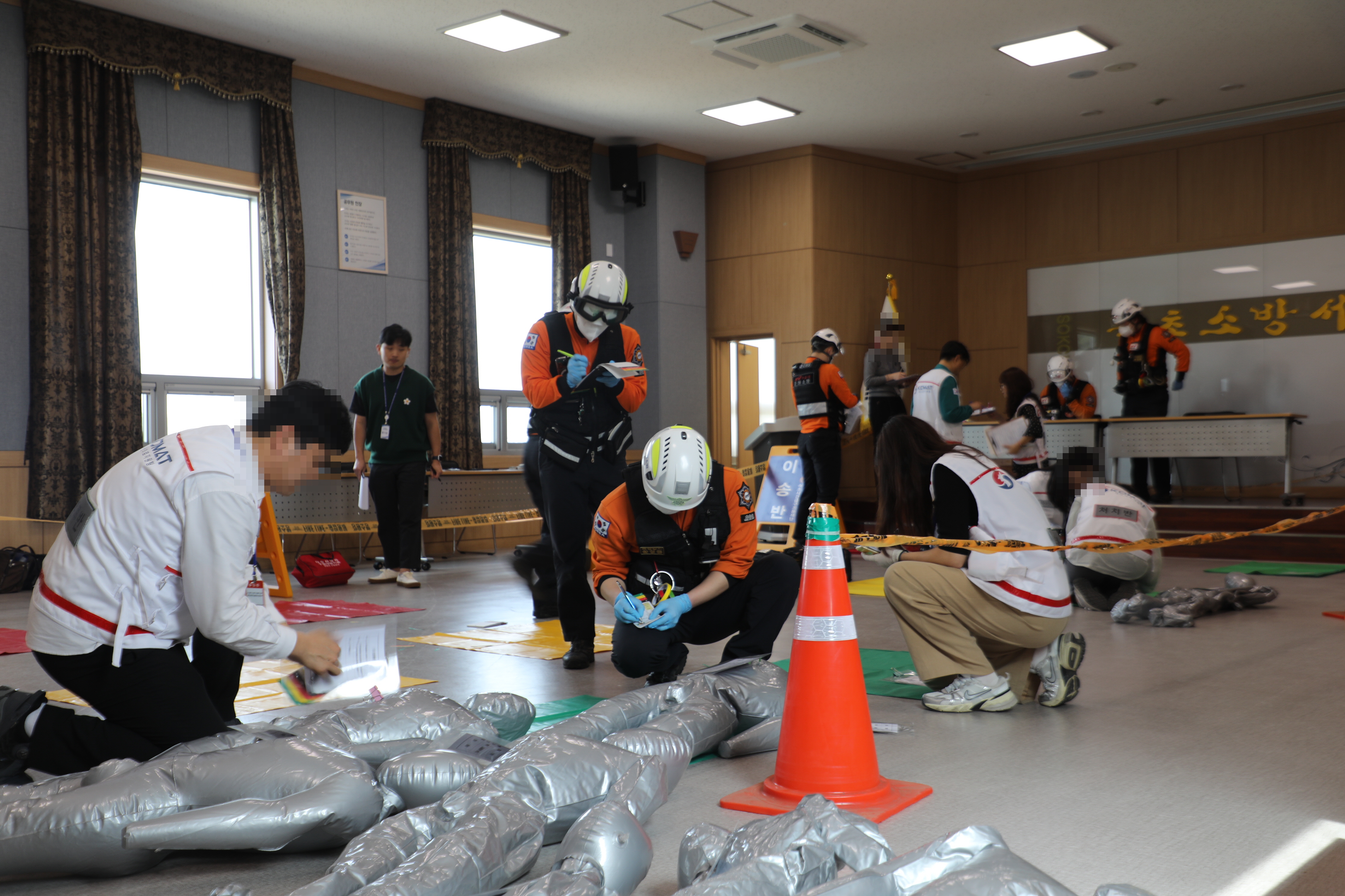 교통사고로 다수의 사상자가 발생한 상황을 가정해 △ 환자 분류 카드를 통한 환자 중증도 분류 △긴급환자 응급처치 및 신속 이송 △ 임시응급의료소 운영 등이 이루어졌다.