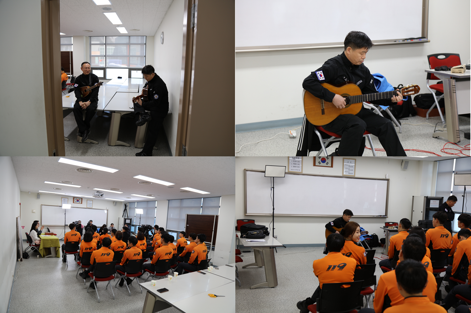 소방학교에서는 소방공무원들과의 이야기를 통해 소방공무원이 된 계기 및 훈련 중 에피소드 등을 알아보았습니다. 끼가 많은 소방공무원들의 장기자랑을 소개하였고 교육생들과의 퀴즈대결을 펼쳤습니다.