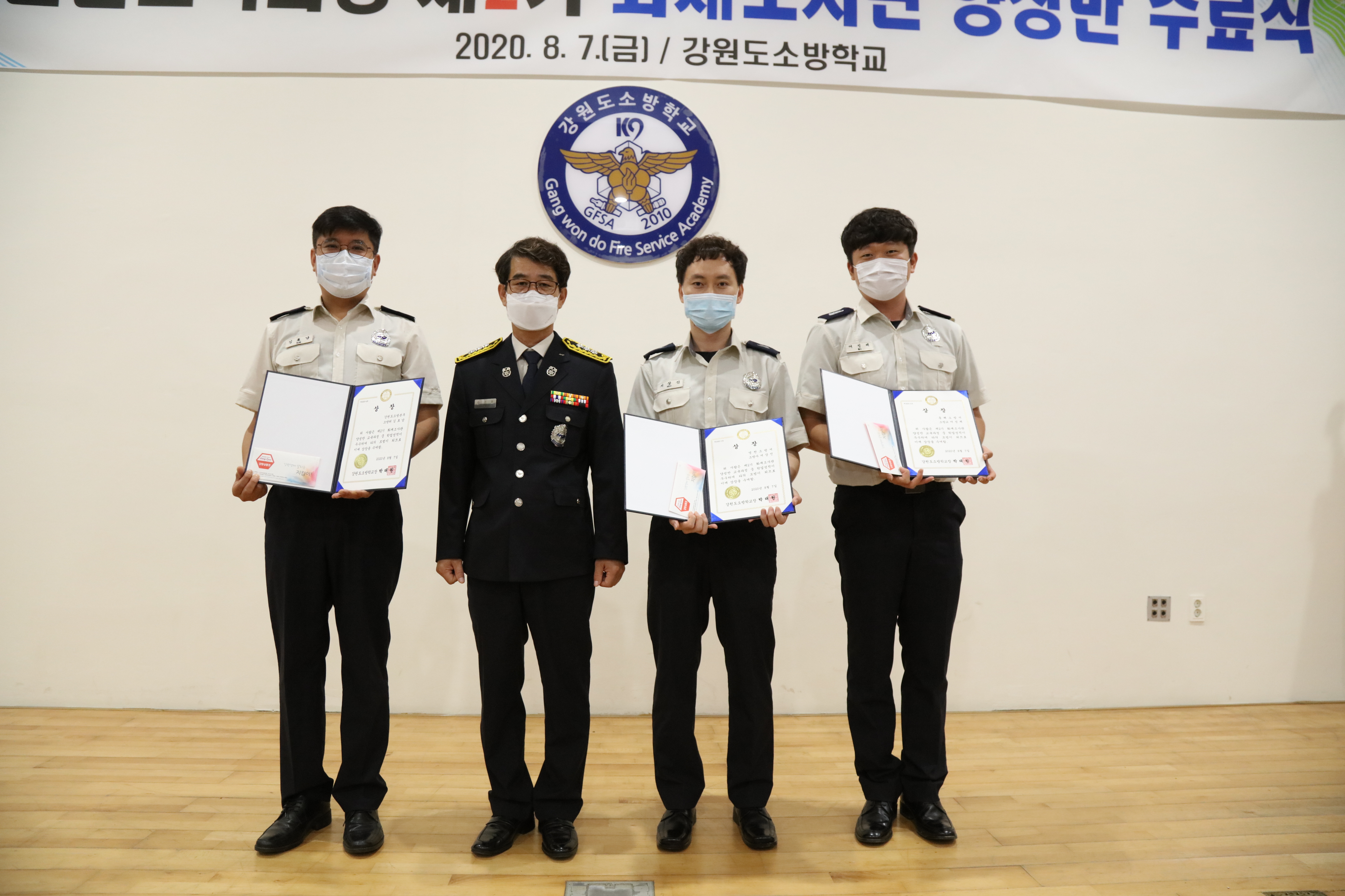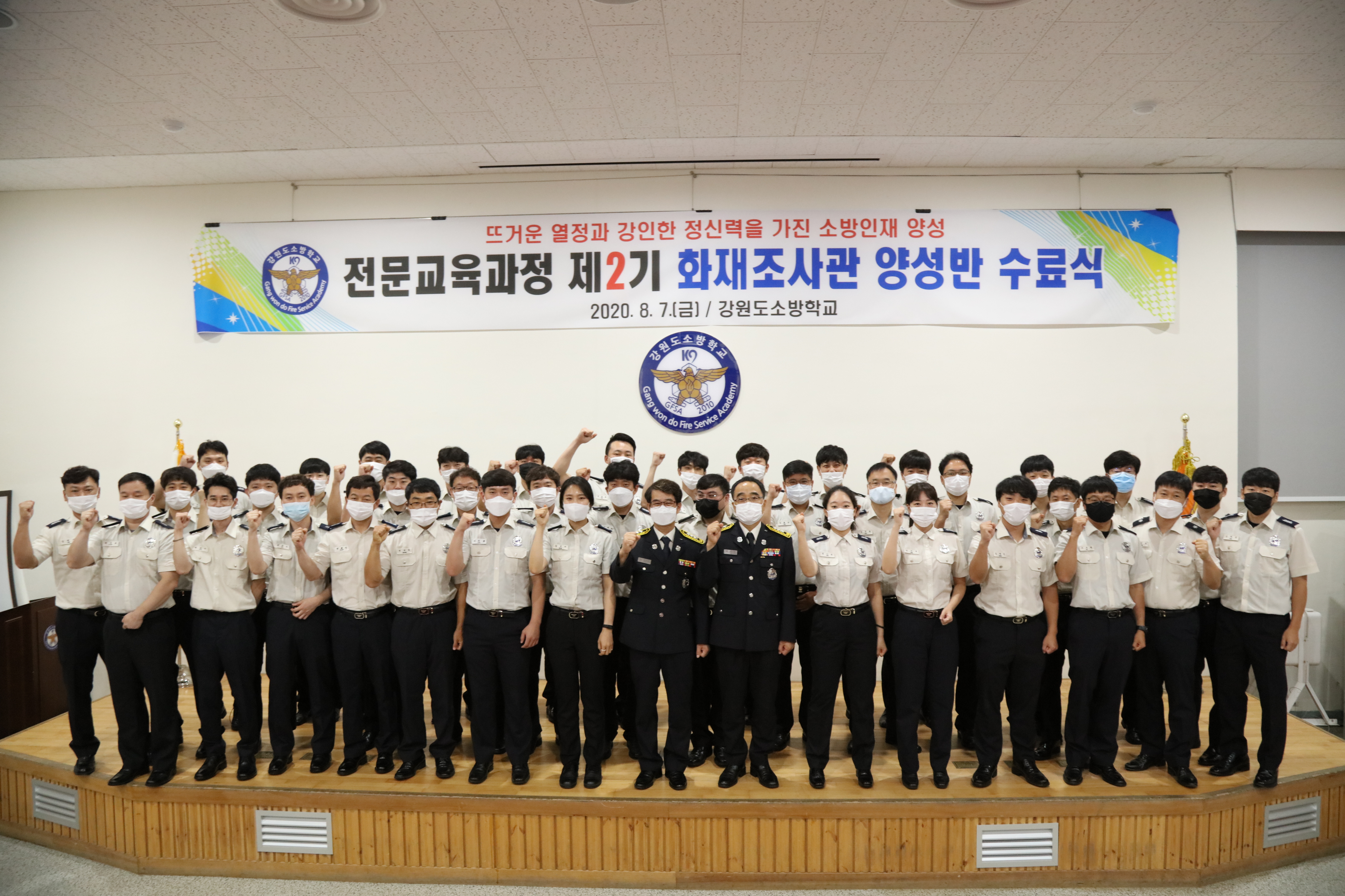 2020. 8. 7.(금) 강원도소방학교 소강당에서 제2기 화재조사관 양성반 수료식이 거행되었습니다.