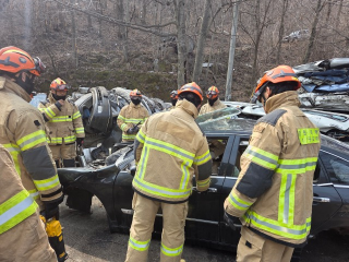 태백소방서는 3월 25일 강원종합폐차장에서 교통사고 현장 대응능력 강화를 위한 인명구조훈련을 실시했습니다.