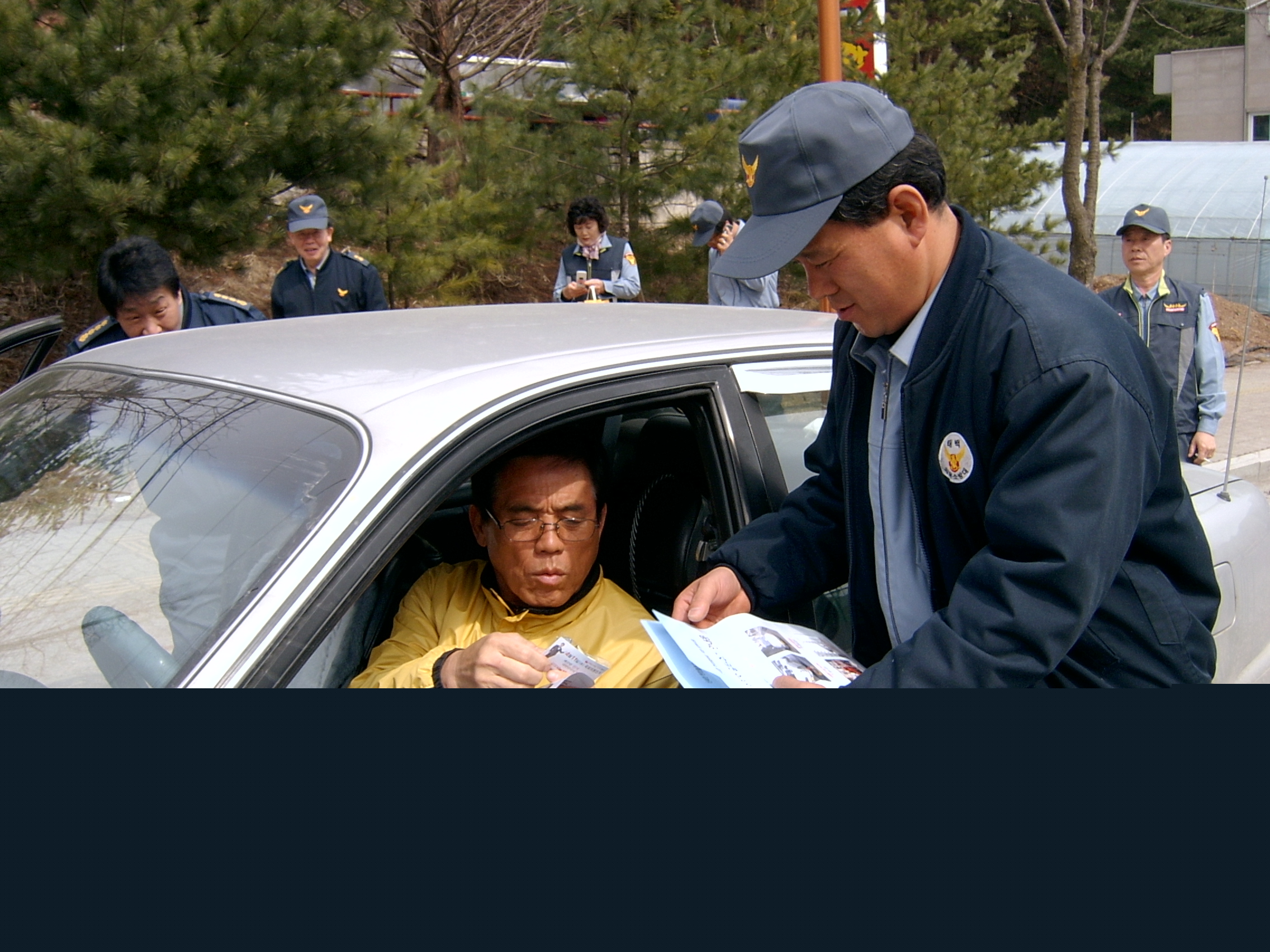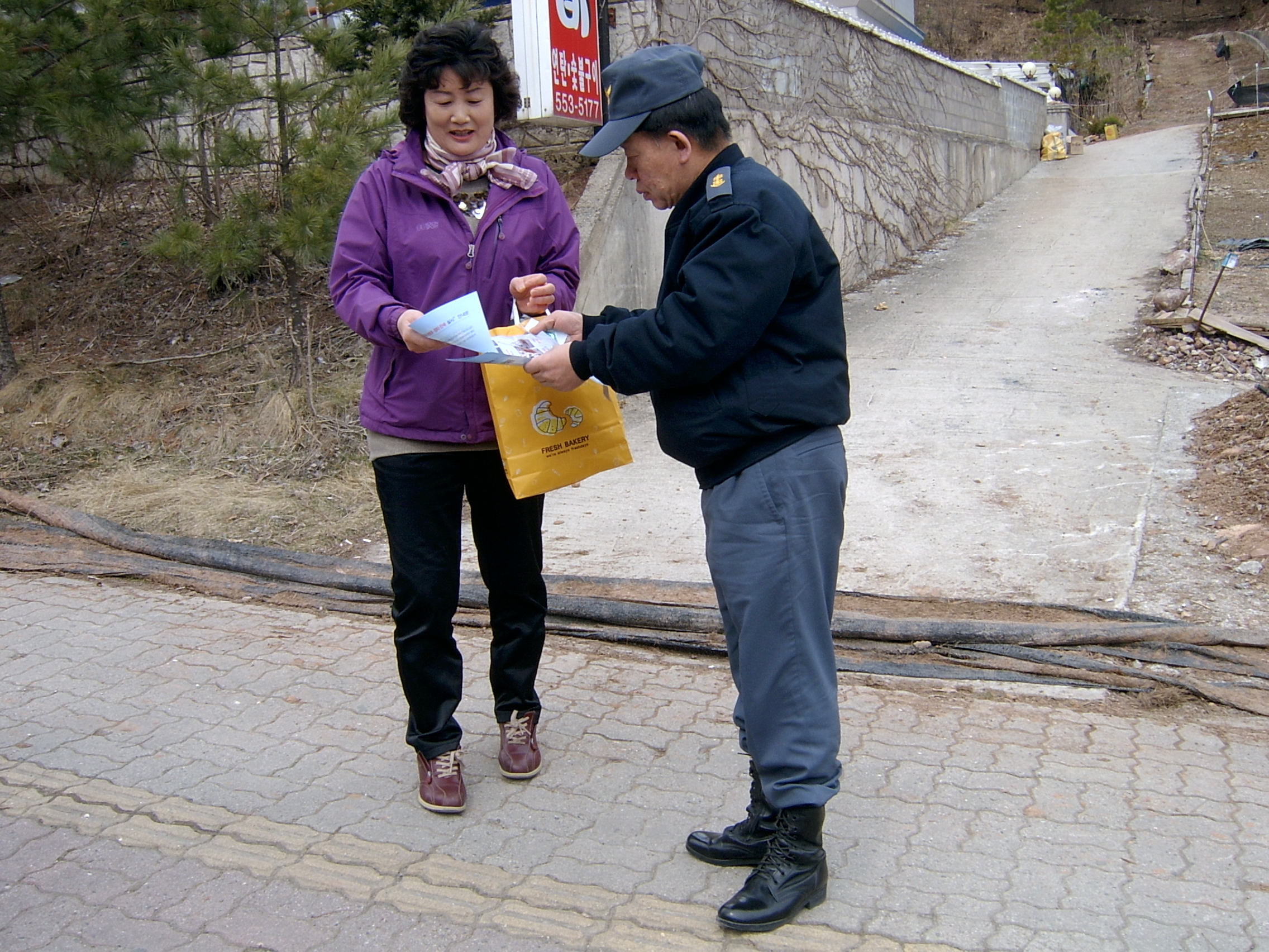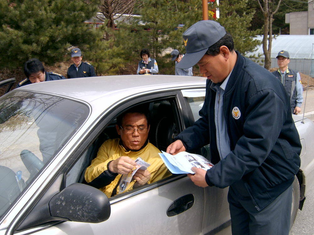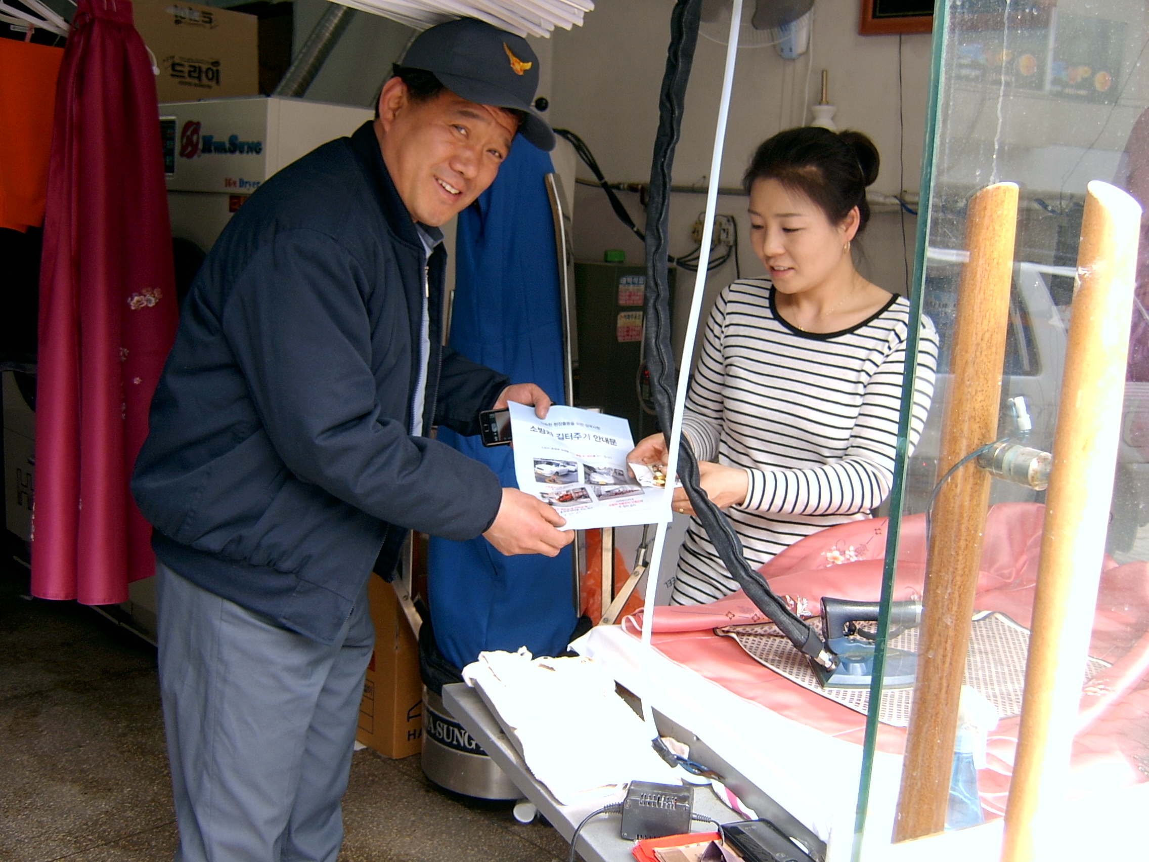 소방차길터주기 홍보지를 돌리고 있는 모습