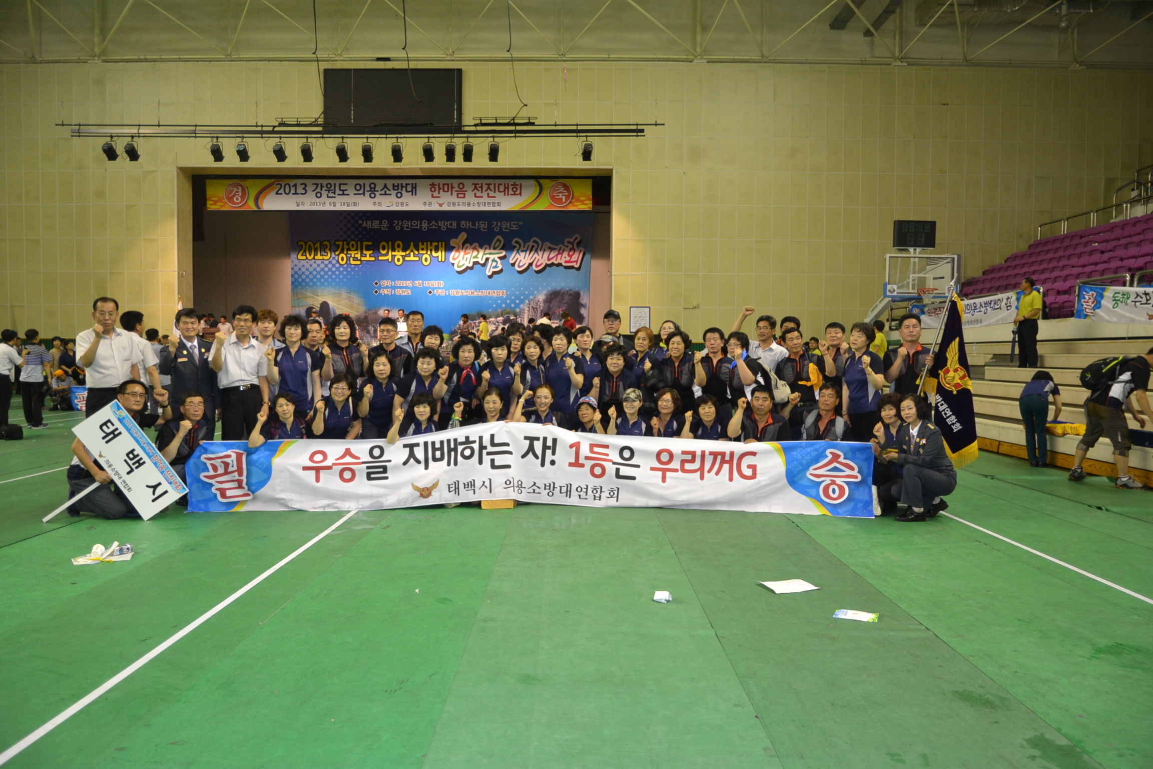 6. 18(화) 춘천 호반체육관에서 소방공무원, 태백남,녀의용소방대 113명이 참여한 가운데 2013년 의용소방대 한마음전진대회 참가하여 친목 화합의 장을 가졌습니다. 이번 한마음전진대회는 강원도내 18개 시,군 의용소방대가 참가하여 소방기술 및 화합 한마당 행사를 개최하여 의용소방대가 한마음이 되는 뜻깊은 행사가 되었습니다.