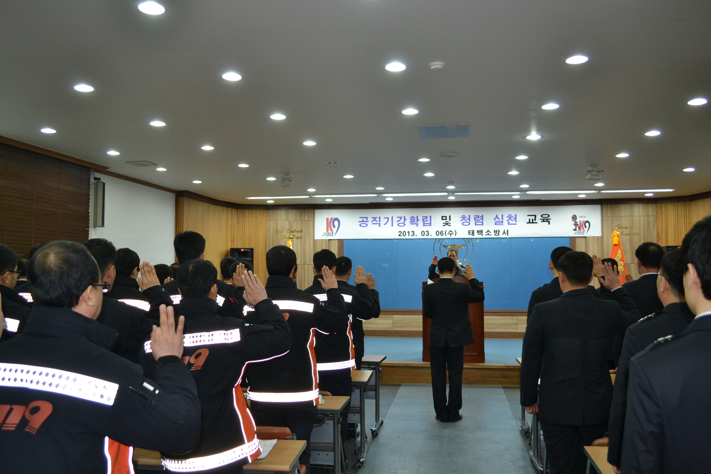 직장 청렴문화 정착을 위해 청렴실천 결의대회를 시작으로 서장님 안전사고 특강, 강원소방학교 이하규 교수 현장안전관리 특강, 연세대학교 원주세브란스기독병원 정신의학과 김민혁 교수를 초빙하여 외상후 스트레스 증상 예방교육등을 실시하였습니다.