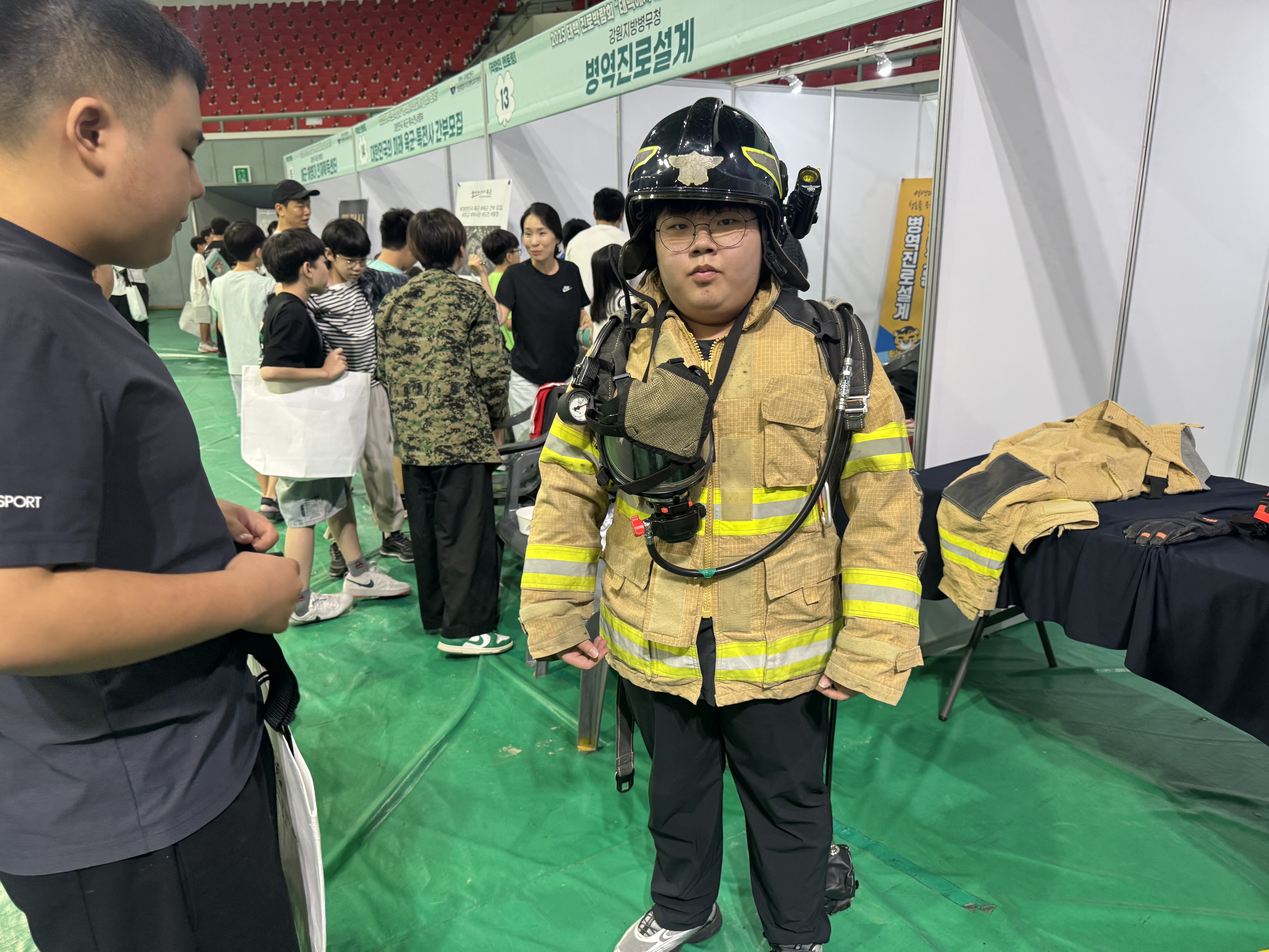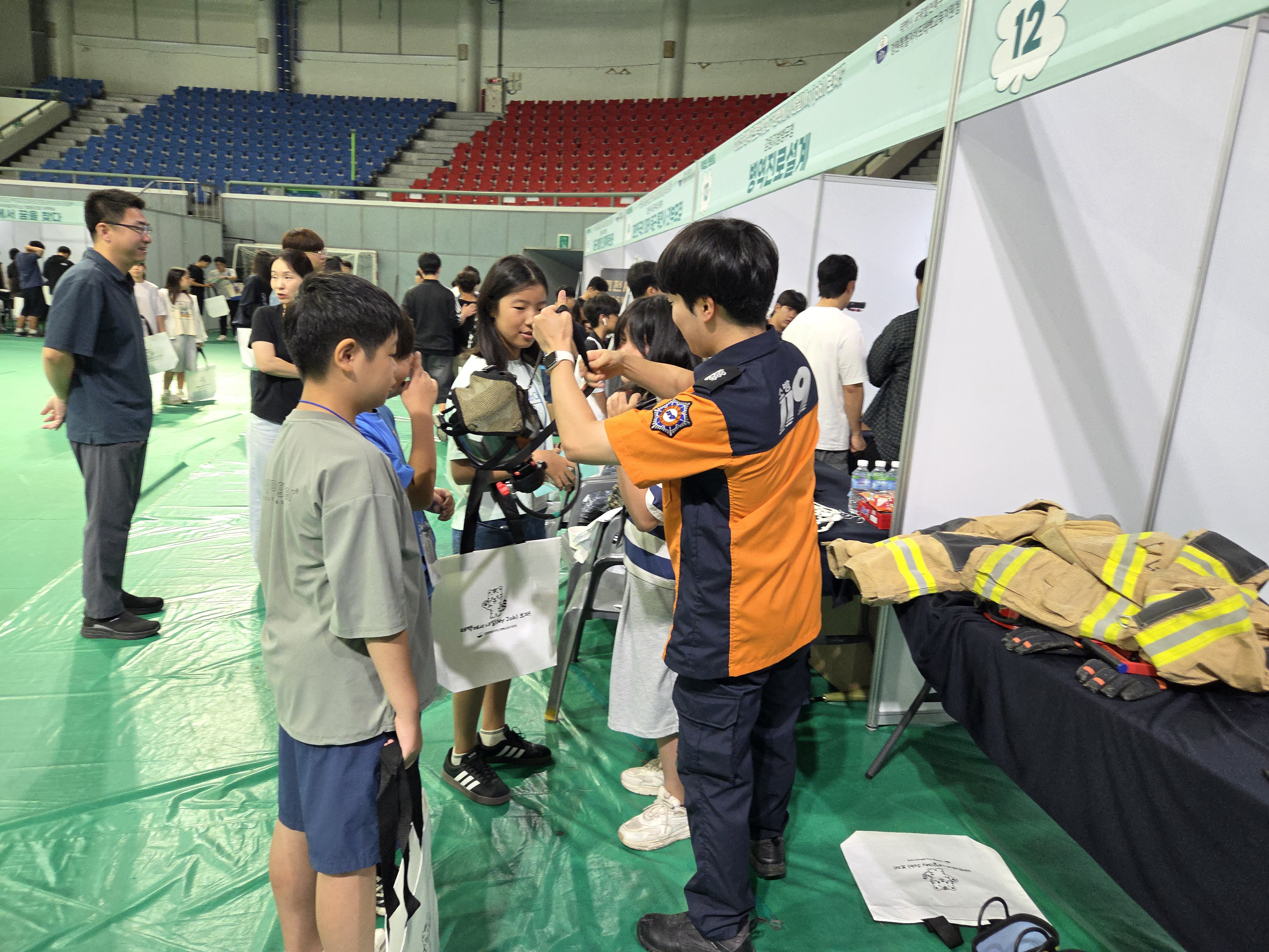태백관내 청소년들이 태백소방서 체험부스에서 소방관 직업 체험을 실시했습니다!