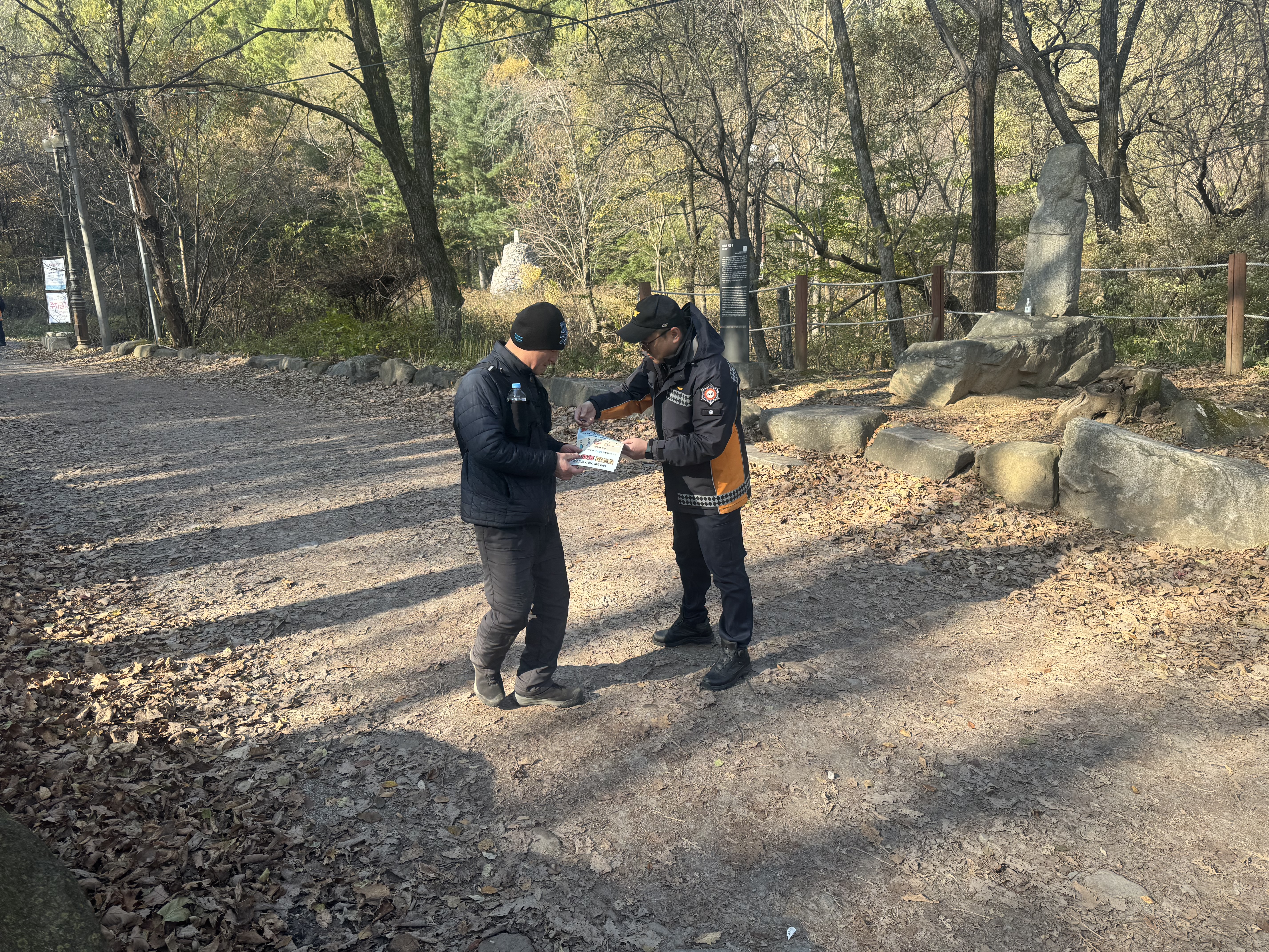 주요 내용은 ▲등산 전 안전 수칙 홍보 ▲응급상황 대처요령 안내 ▲입산 시 화기물질 소지 절대 금지안내 등 이다.