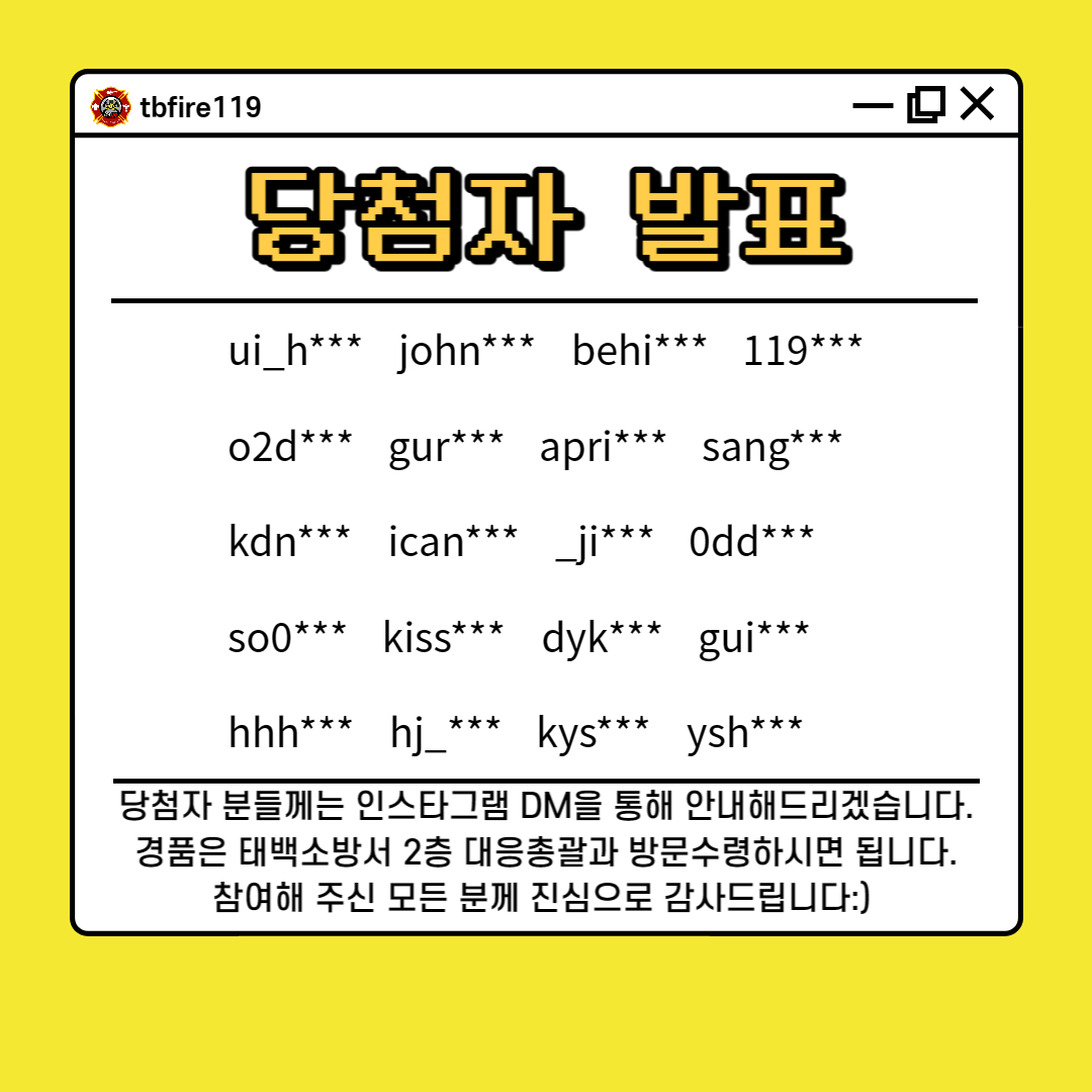 당첨자 분들께는 인스타그램 DM을 통해 안내해드리겠습니다.