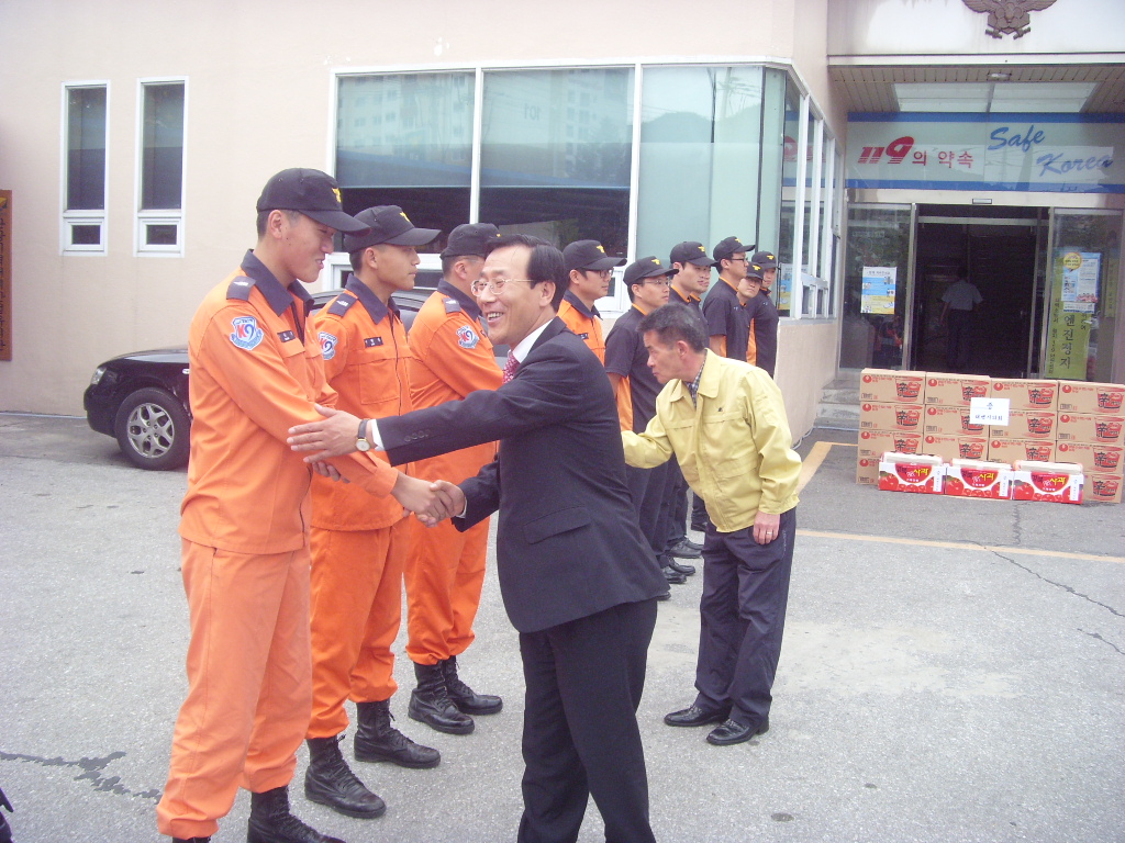 추석을 맞아 태수회(통합방위협의회)와 태백시의회는 9월 29일(화) 태백소방서를 방문하여 의무소방원 및 사회복무요원에게 과일과 컵라면 등을 전달하고 위로했다.