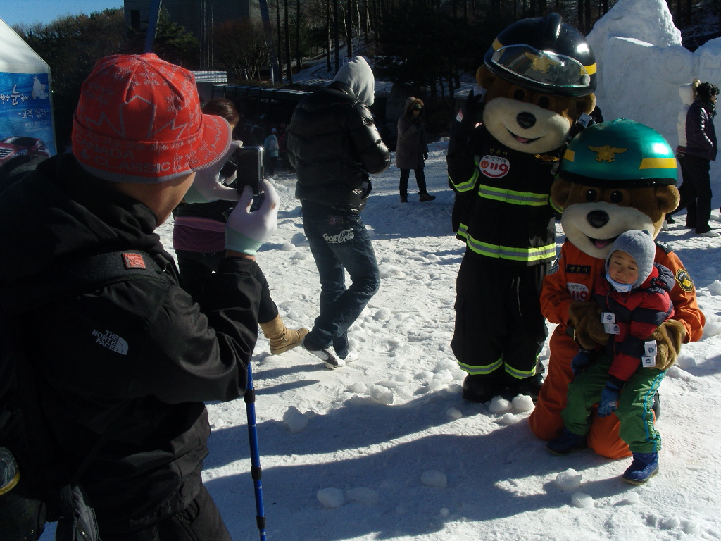태백산 눈축제에 나타난 곰돌이