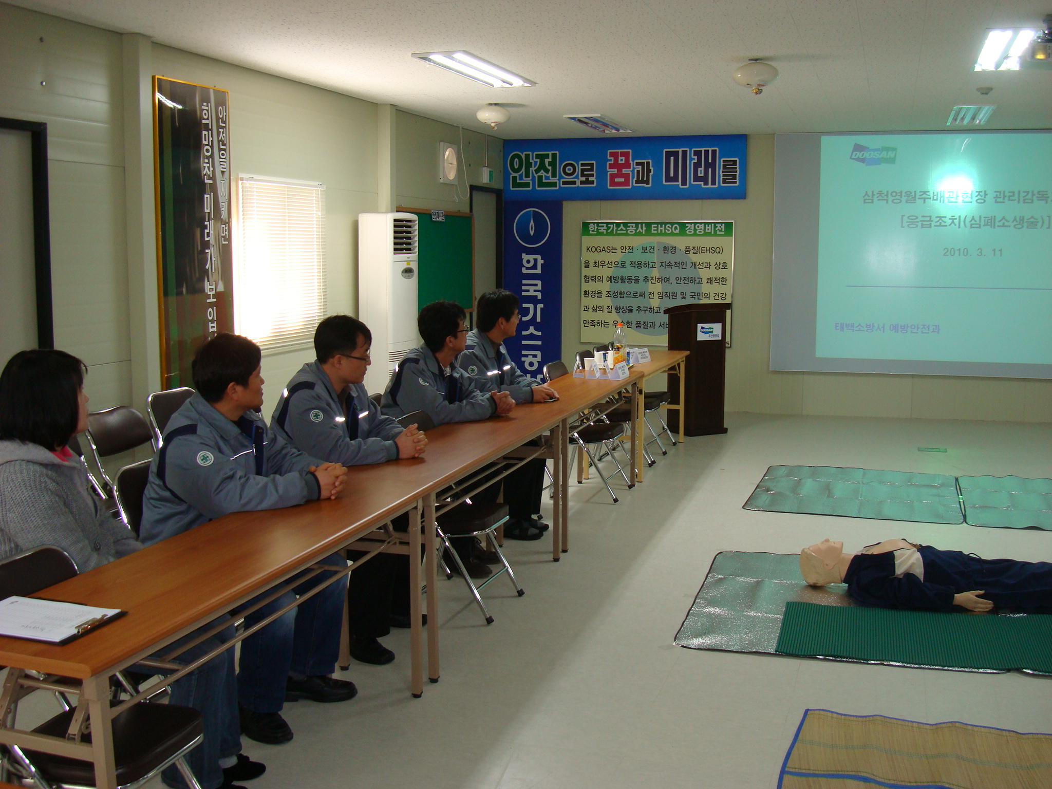 태백소방서(서장 정승진)는 3월 11일 오전 두산중공업 직원들을 대상으로 심폐소생술 교육을 실시했다.