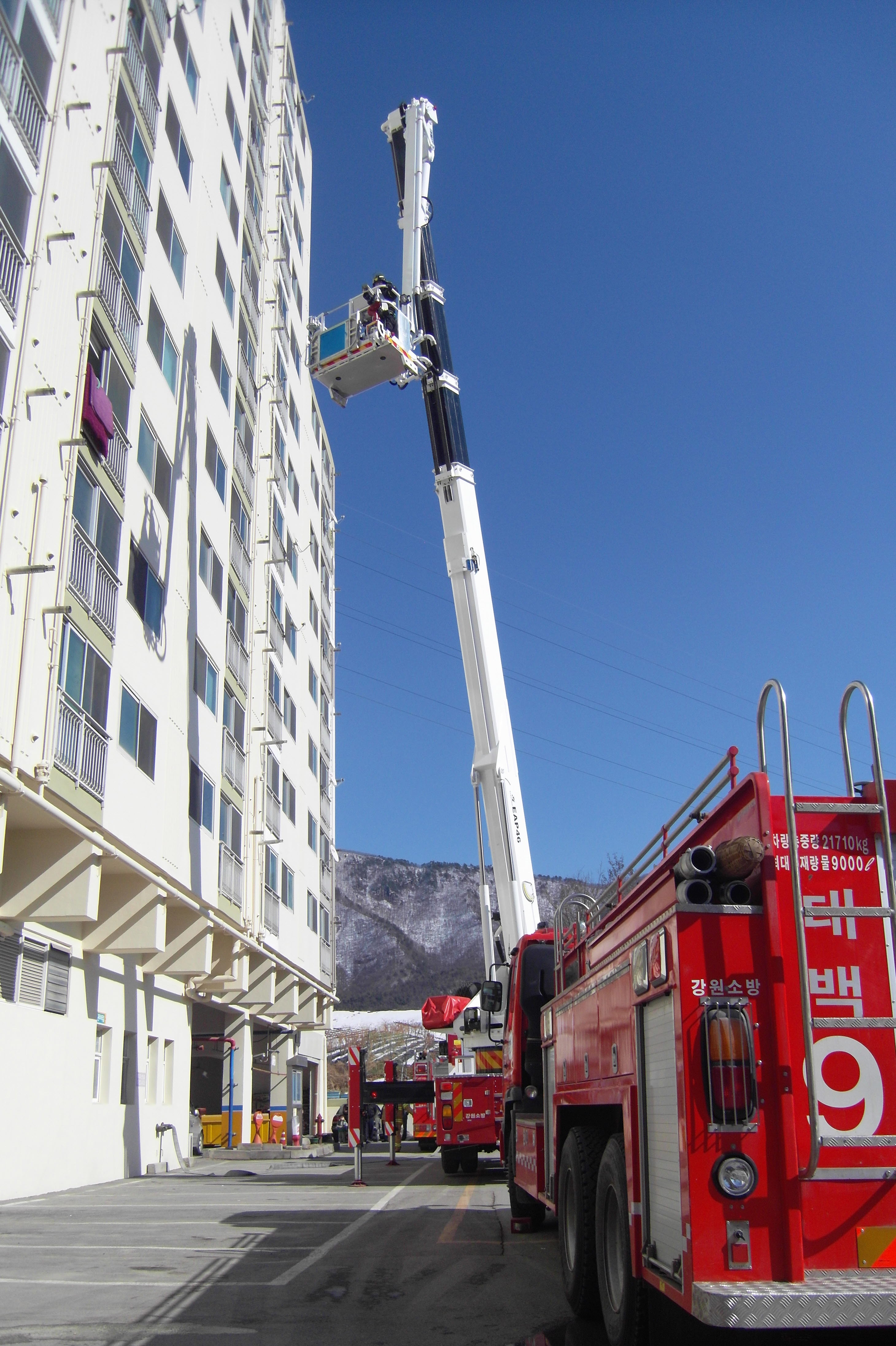 태백소방서(서장 여윤길)는 지난23일 황지동 선명3차아파트에서 소방차 8대, 소방공무원 16명, 자위소방대 11명이 참여한 가운데 ‘고층건축물 합동소방 훈련’을 실시했다.