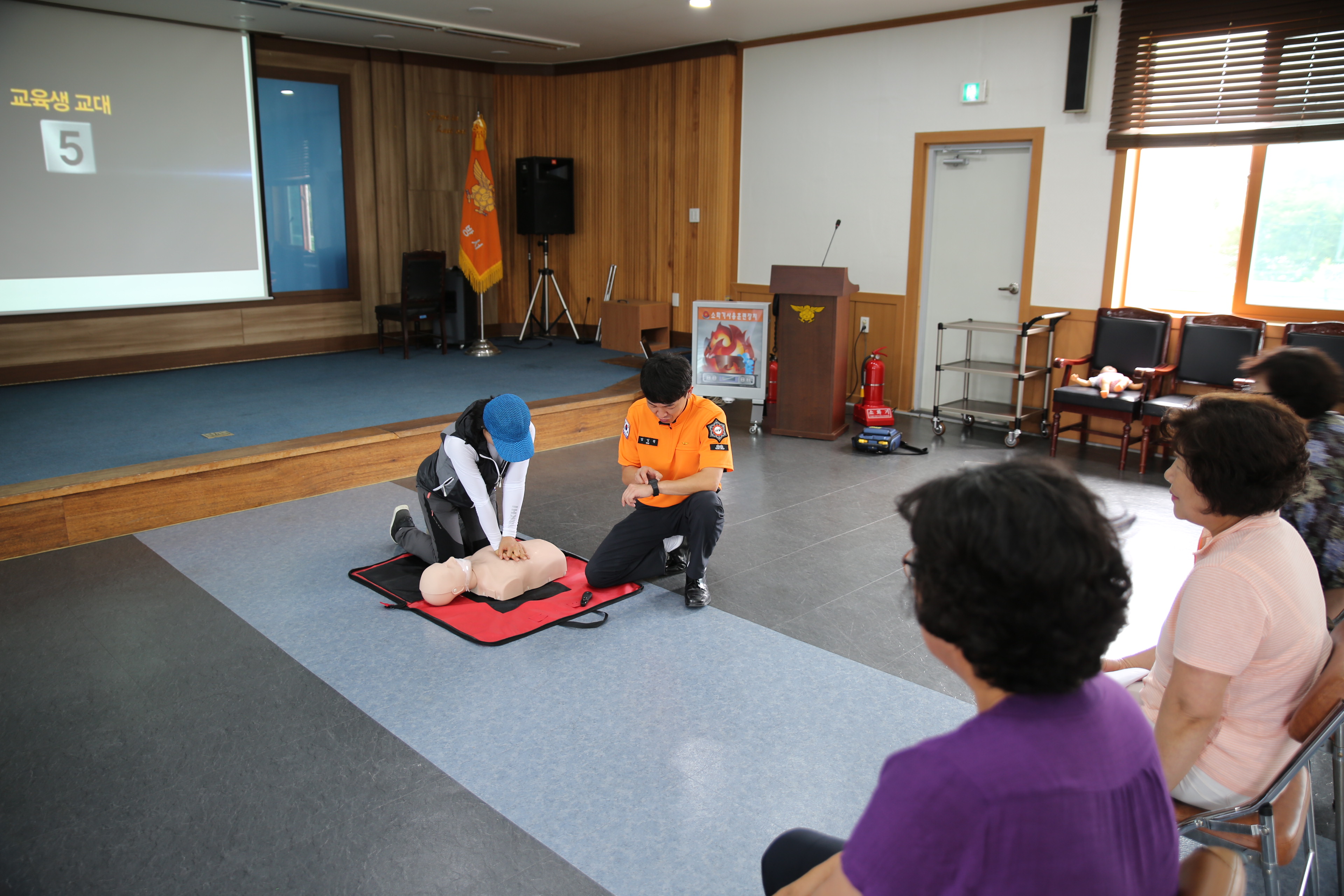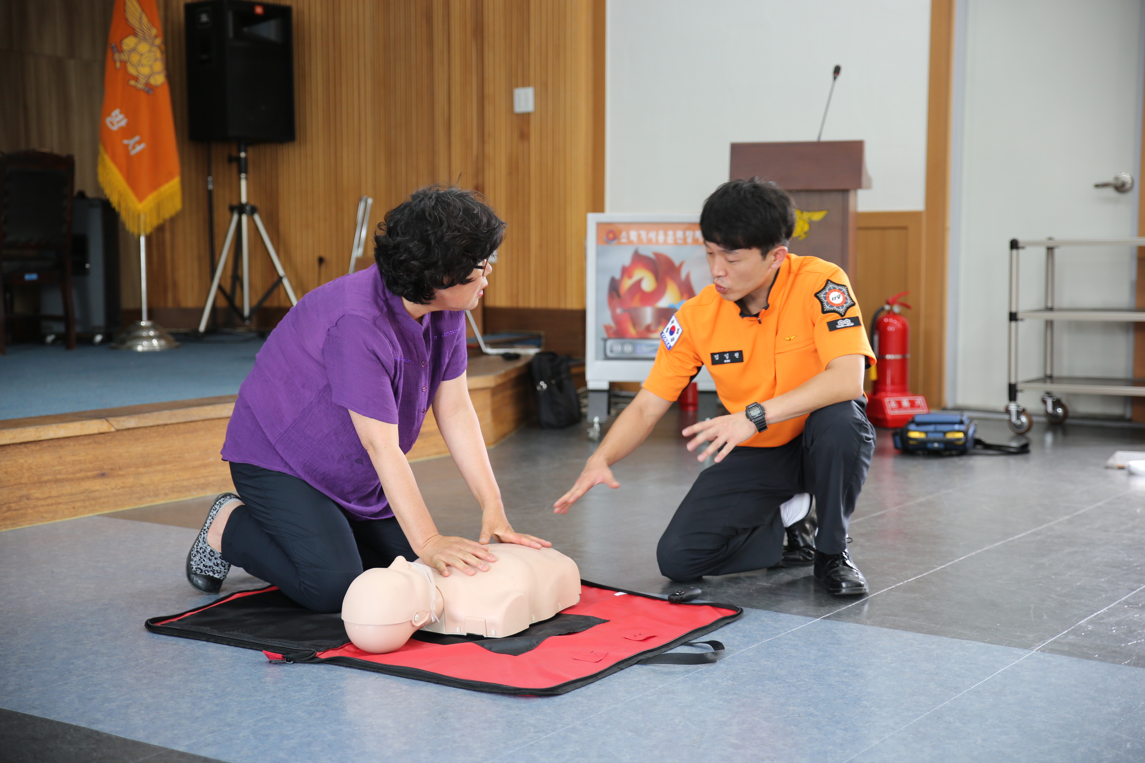이번 교육은 아이돌보미 선생님들이 부모에게 귀가시킬 때까지 아이들을 안전하게 돌볼 수 있도록 유사시 행동요령과 응급처치에 대해 실습교육 중심으로 진행됐다.
