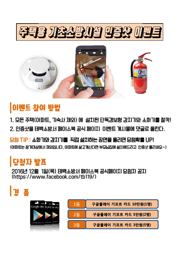 ※ 당첨자 발표 : 2016.12.01(목) 태백소방서 홈페이지 및 페이스북 페이지