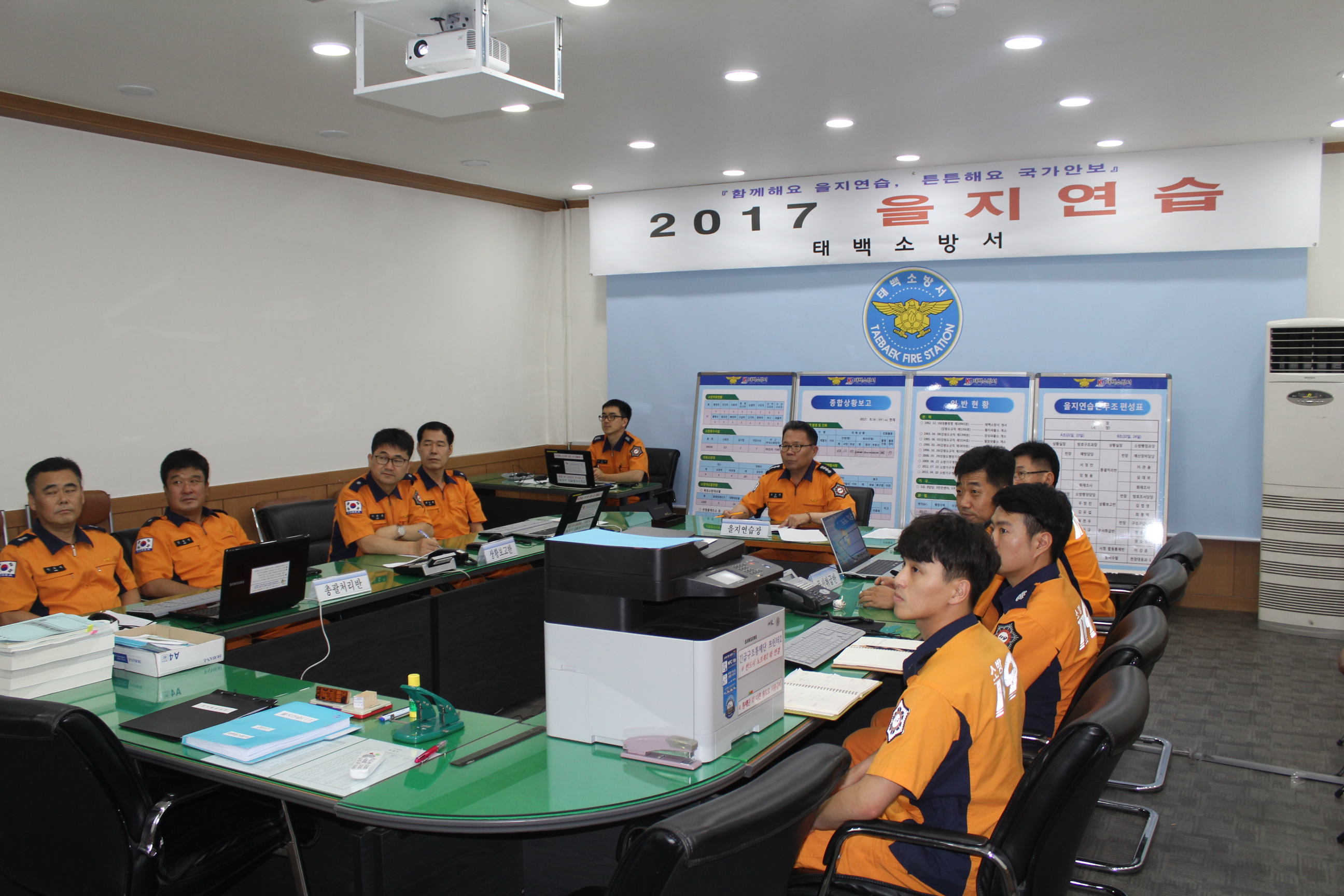을지연습은 국가비상사태에 능동적으로 대처하기 위하여 정부차원에서 종합적으로 비상대비업무를 수행하는 훈련으로, 태백소방서는 ▲ 비상소집 ▲ 을지연습 최초상황 보고회 ▲ 전시종합상황실 운영 및 직제편성 ▲ 국가시설 테러대비 민관군경 합동훈련 등 10여개의 훈련을 실제 상황으로 가정하여 실시하였다.