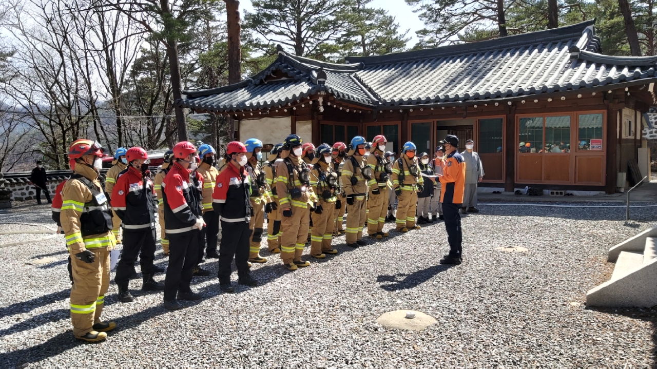 태백소방서, 봄철 산불 대비 문화재 장명사 합동소방훈련 실시