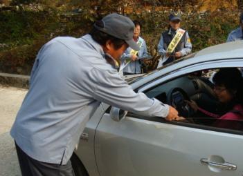단풍이 절정에 다른 24일 원주소방서(서장 조근희) 신림의용소방대 및 신림여성의용소방대원들은 신림면 성남2리 치악산 성남매표소 입구에서 가을철 산악사고 및 산불예방 캠패인을 실시하였습니다. 아름다운 치악산의 가을단풍을 보기 위해 이른 아침부터 모인 등산객을 대상으로 불조심 홍보전단 배부한 뒤 등산로 청결활동을 실시하였습니다.