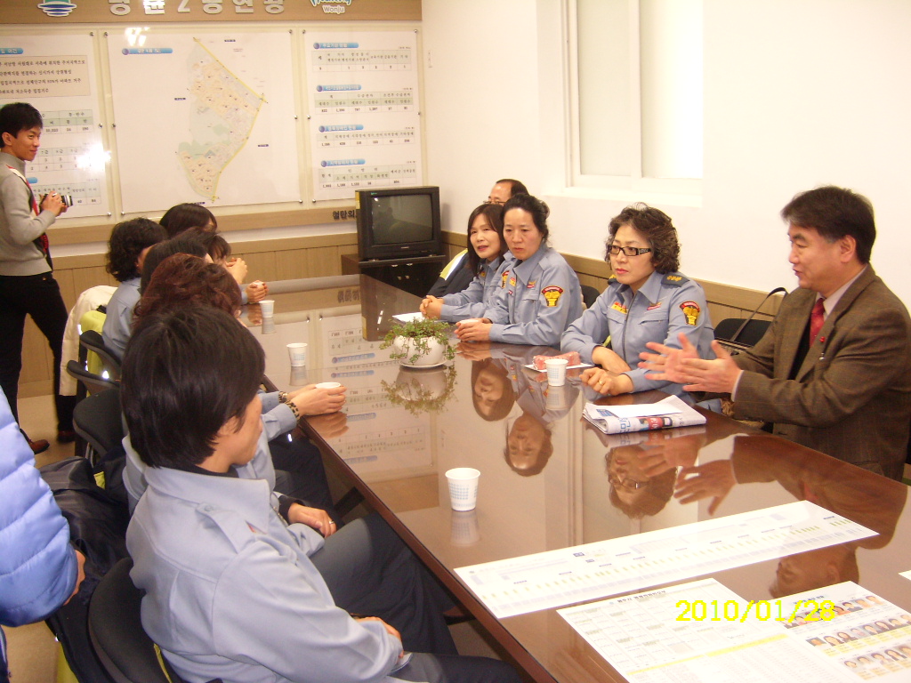 원주여성의용소방대에서는 2010년 1월 28일 (목) 명륜2동 주민센타에 방문하여, 신관선 동장님께 불우이웃돕기성금 일금 오십만원정(₩500,000)을 전달하였습니다.