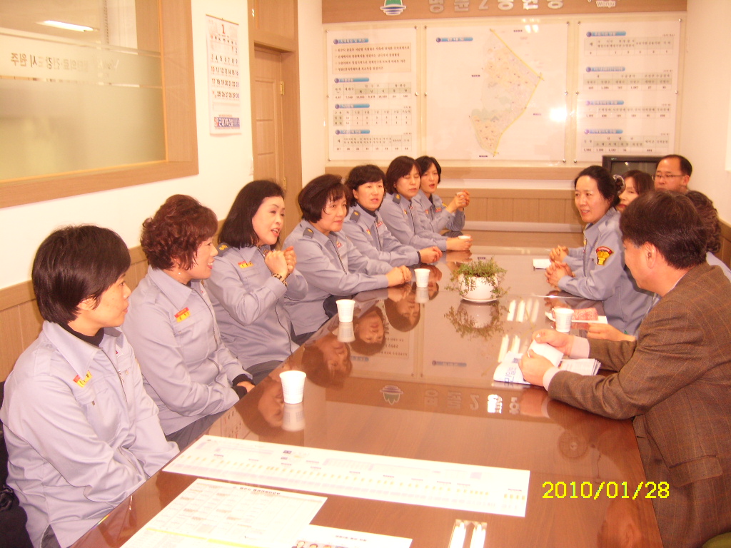 신관선 동장님께서는 관내 독거노인, 소년소녀가장 등 소외계층들의 어려움에 대해 말씀하셨고, 이현자 대장님께서는 대원들과 상의하여 도움의 손길이 되도록 노력하겠다고 화답하셨습니다.