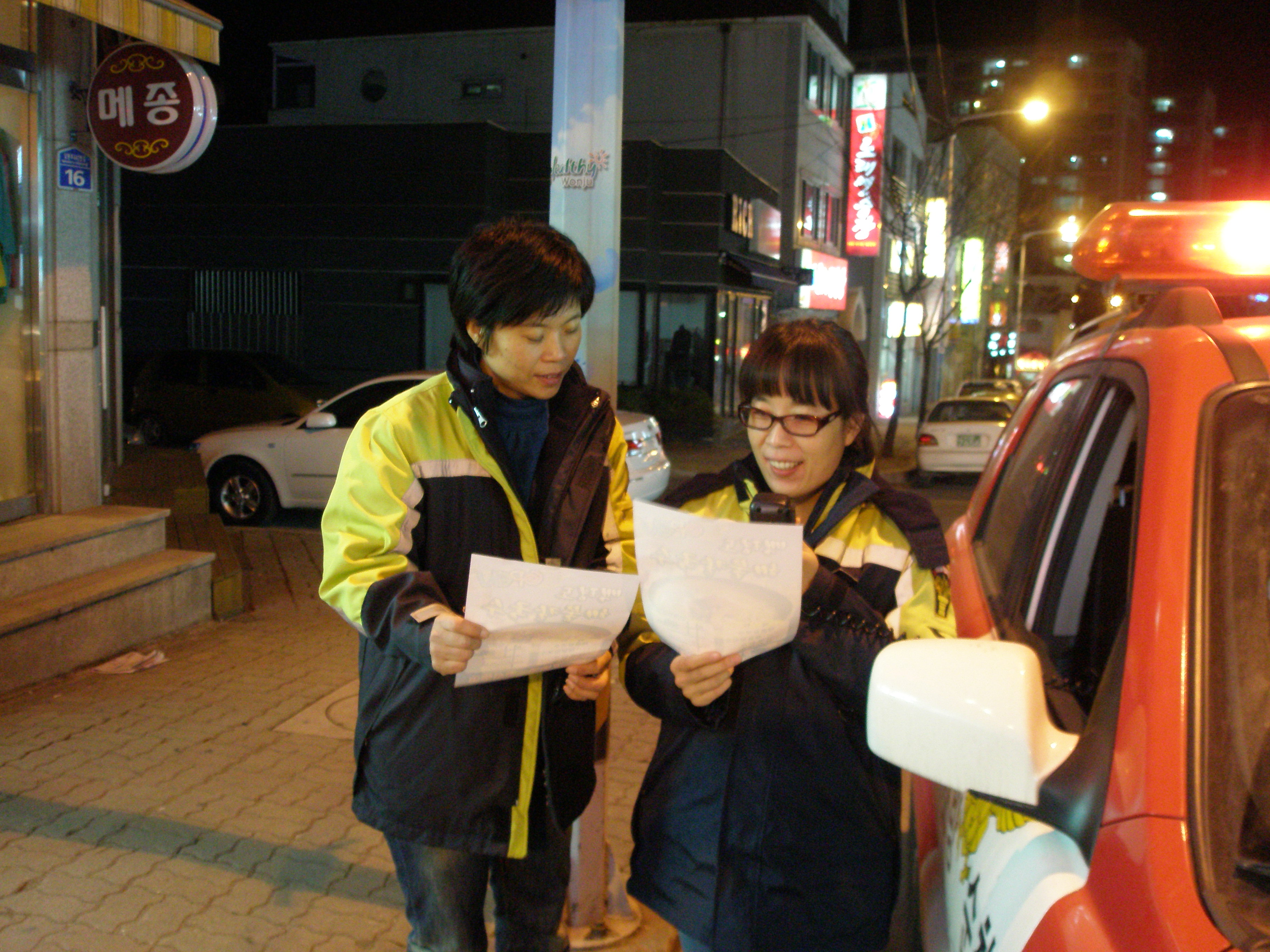 근무시간은 매일 20:00 ~ 24:00 4시간씩 2인1조로 근무하는데, 늦은 시간에 출동하는 다소 애로사항이 없지 않아 있지만, 시민들에게 화재예방 경각심을 고취한다는 측면에서 소홀히 할 수가 없더군요...