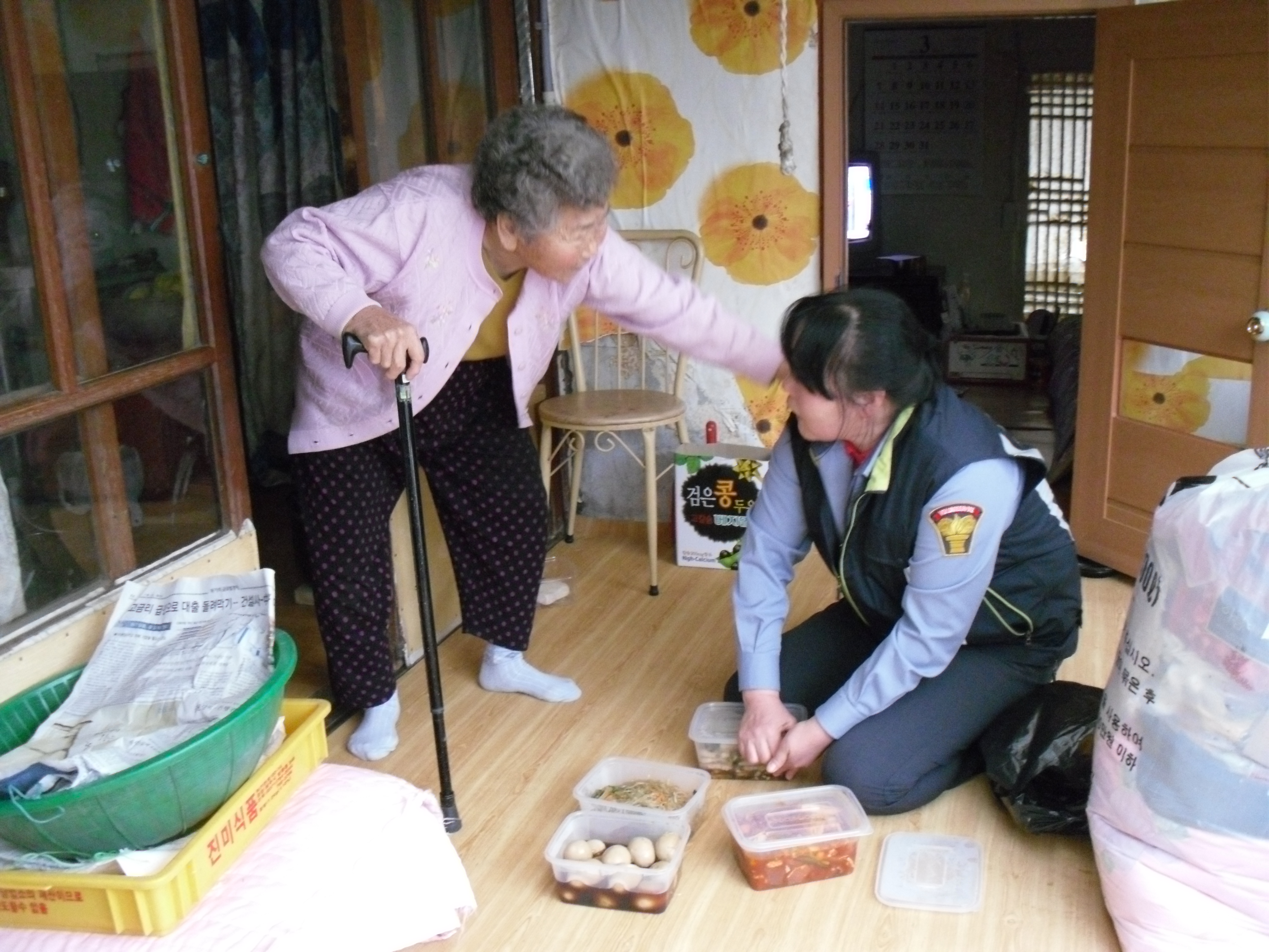 매월 대원들이 직접 정성을 듬뿍 담아 만든 반찬을 모아 관내에 거주하고 계시는 독거노인 가정에 가져다드리며, 자연스레 안부도 여쭙고 집안일도 거들어 드리고 있답니다. 물론 어르신들이 너무너무 좋아하시구요. 어르신들의 얼굴에서 미소를 보는 저희는 더욱 행복하답니다. 여러분도 행복에 동참해 보세요~.