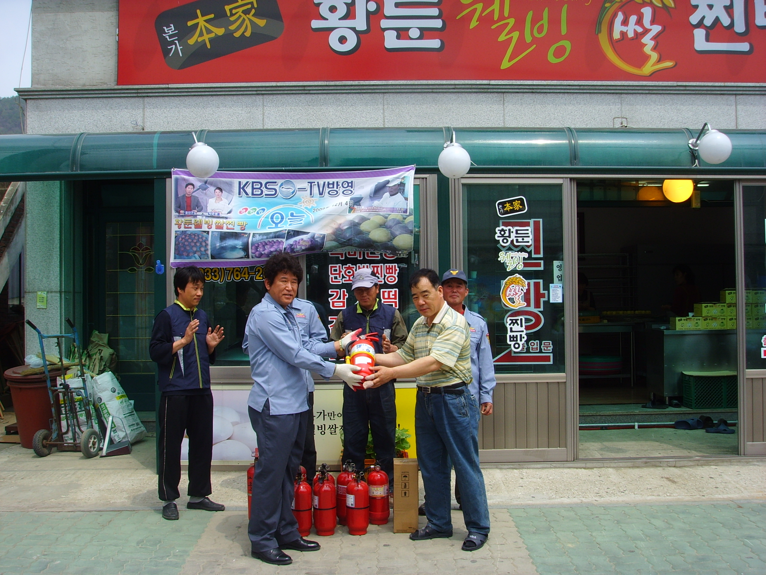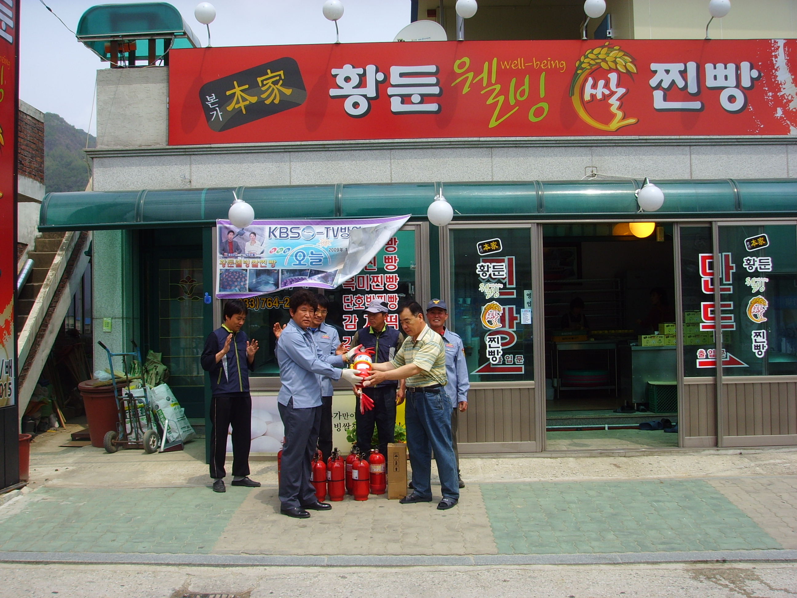 위해 황둔시장번영회(회장 라광열) 와 협의 소화기13대. 충약16대. 구입하여 기증하였습니