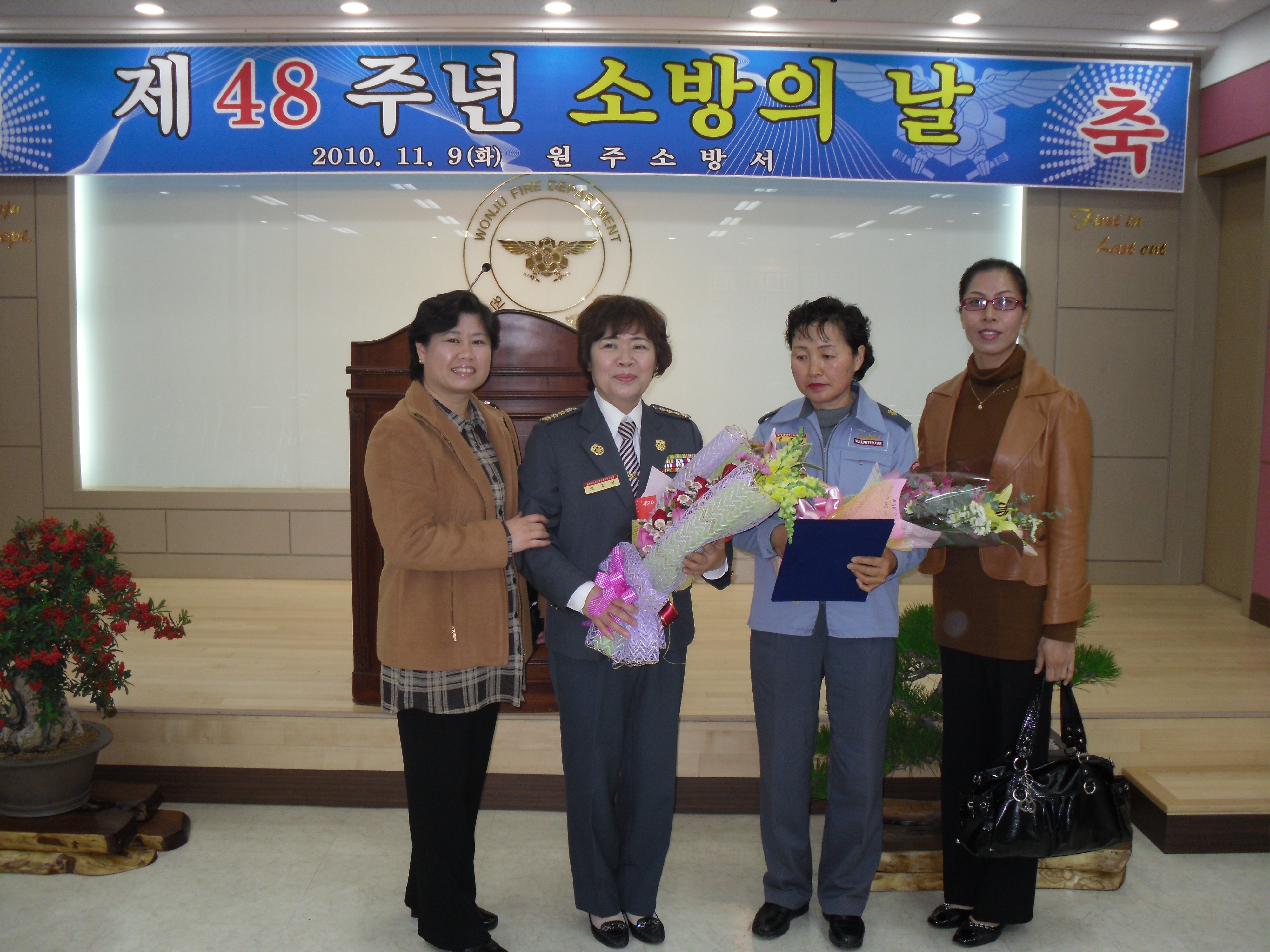 2010년 11월 09일(화) 11:00~13:00 흥업여성대(대장 오오석)는 제48주년 소방의 날을 맞아 원주소방서 대회의실에서 실시된 소방의 날 행사에 참석했습니다.