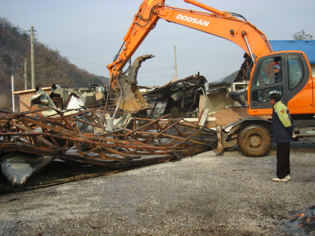중장비를 동원 화재로 소실된 주택 및 가재도구 일체를 철거 . 정리 하였습니다.