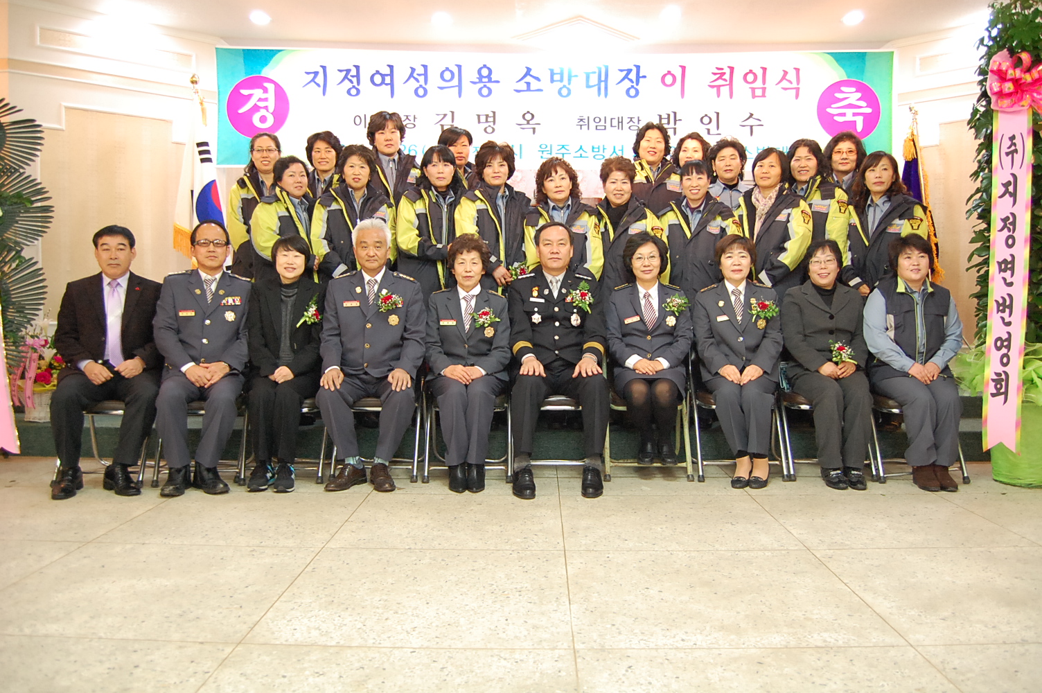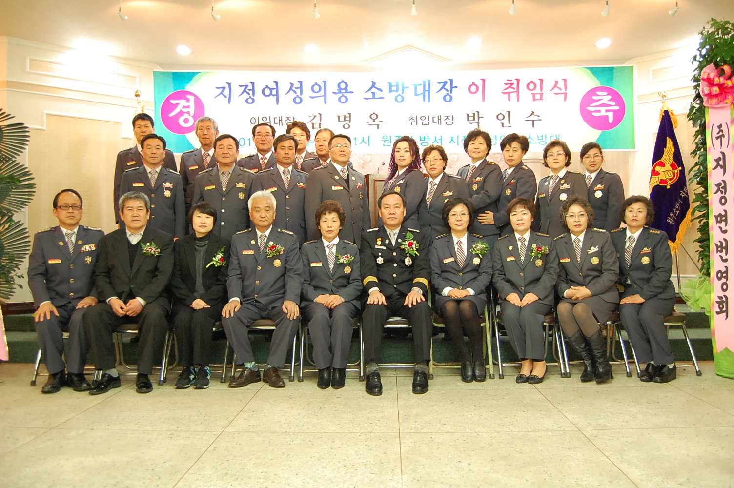 원주소방서(서장. 박창진)는 2011.01.26 (수) 11:00 - 지정면복지회관에서 제2대 지정여성의용소방대장 이취임식을 가졌습니다.