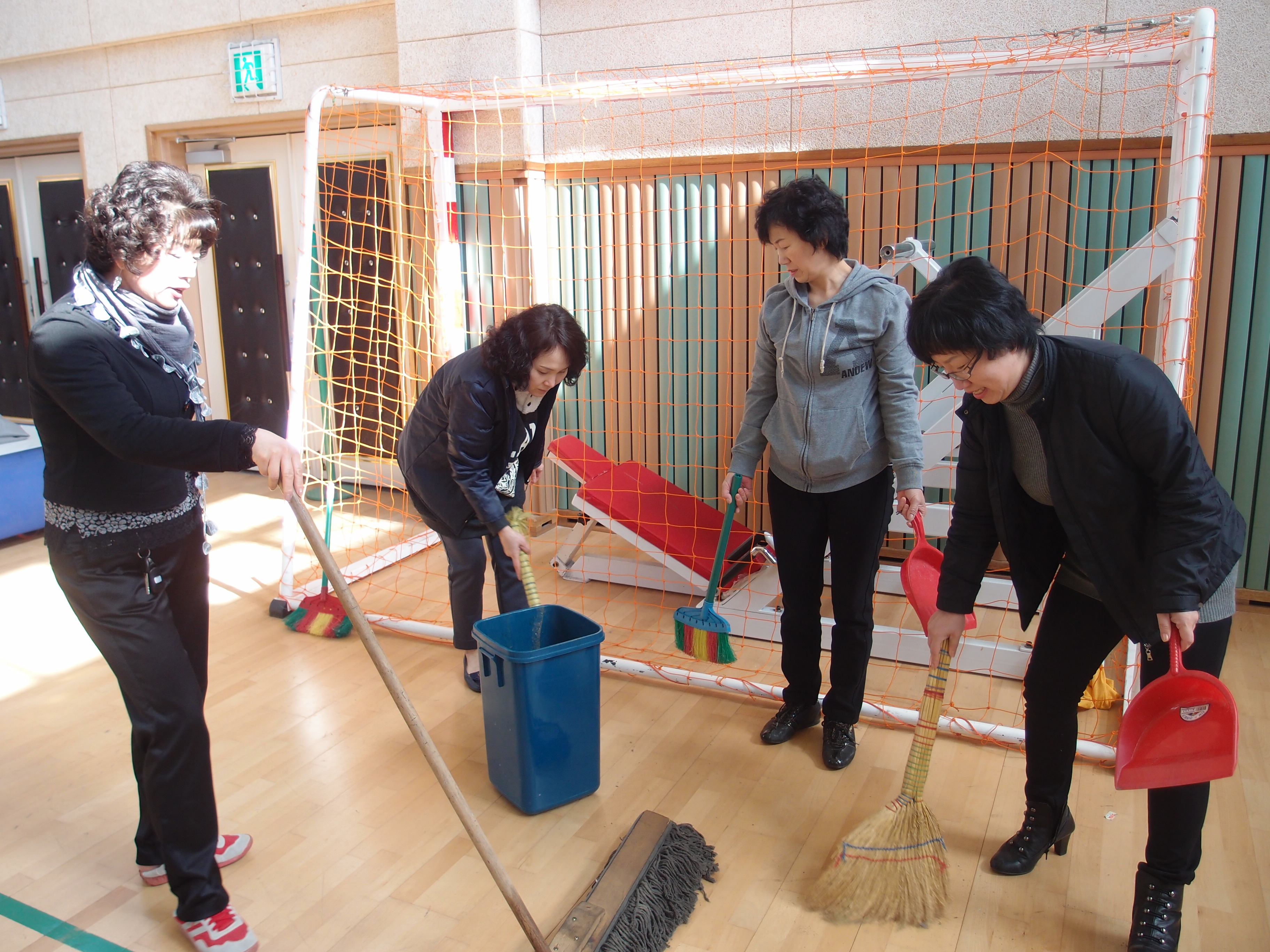 오늘은 청원학교 체육관 바닥과 스텐드를 닦았지요?
