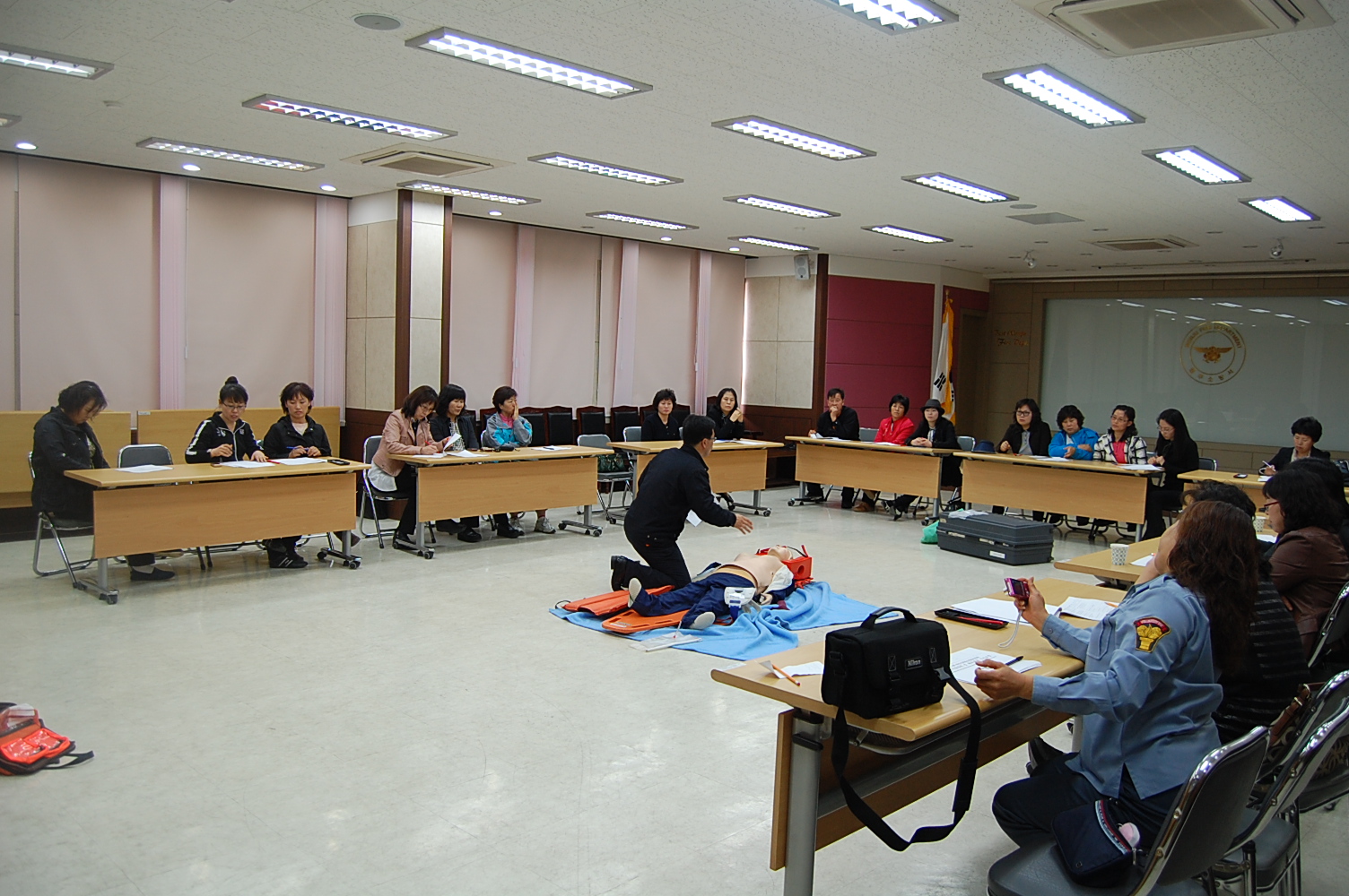원주소방서(서장. 박창진)는 4.25(월) 10:00-12:00 본서 대회의실에서 제14회 원주시의용소방대연합회 소방기술경연 및 체육대회(5.3 화 10:00-16:00, 원주양궁장) 대비 여성대 응급처치경연대회 경연종목에 대해 설명회를 개최하였습니다.