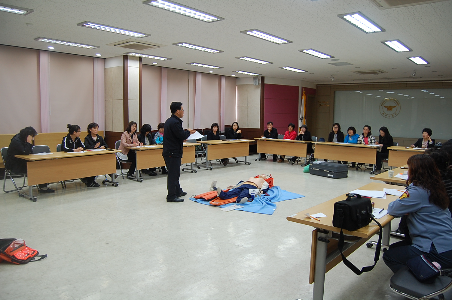 경기종목은 심폐소생술, 부목고정응급처치 2종목으로서 소방장 심준택(명륜센터), 소방장 김주현(예방안전과)님이 당일 심판관의 자격으로 강원도지사기 여성대응급처치 경연대회 기준에 맞게 논란의 여지가 있는 부분 및 경기요강과 평가에 대해서 상세하게 설명하고 질문 받는 형식을 취하였습니다.