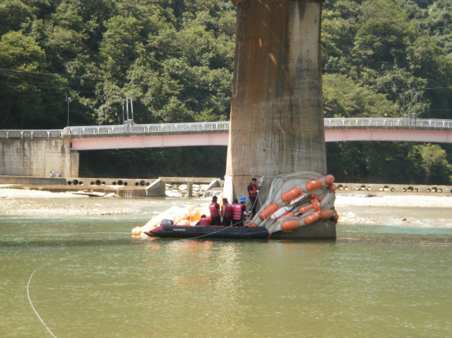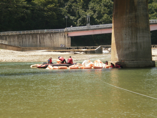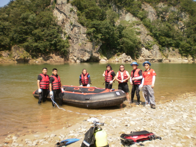 7월21일 원주 남.여 의소대원들이 간현관광유원지를 찾아 행락철 시작전 장마전 인해 떠내려온 수중쓰레기 수거활동을 하였습니다. 대부분의 남.여 대원들이 강가에서 비닐,병조각,각종쓰레기를 수거하였지만 구조반은 철교교각을 흉물스럽게 붙어 있는 부표 제거 작업을 하였습니다.