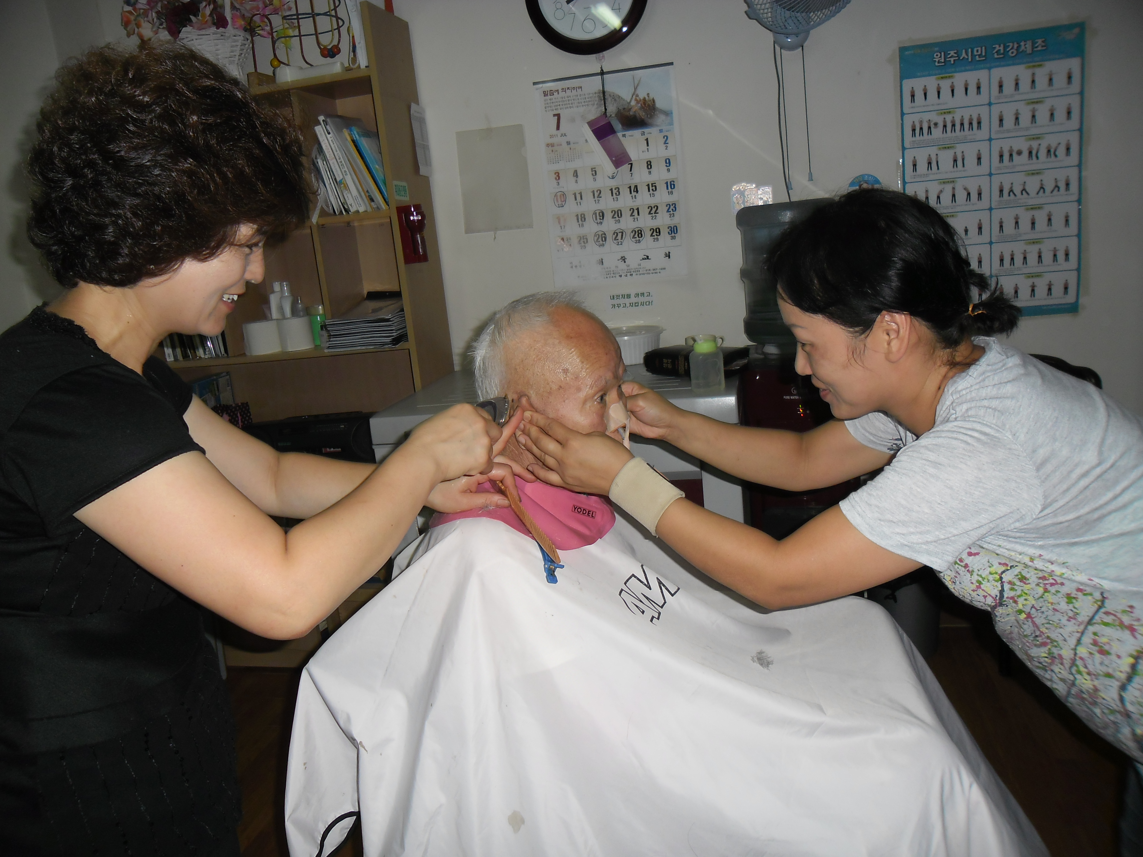 2011년 7월 22일 지정여성의용소방대(대장 박인수)외2명이 평심원 미용봉사를 하였습니다.어르신들의 머리카락을 예쁘게 잘라드리고 왔습니다.