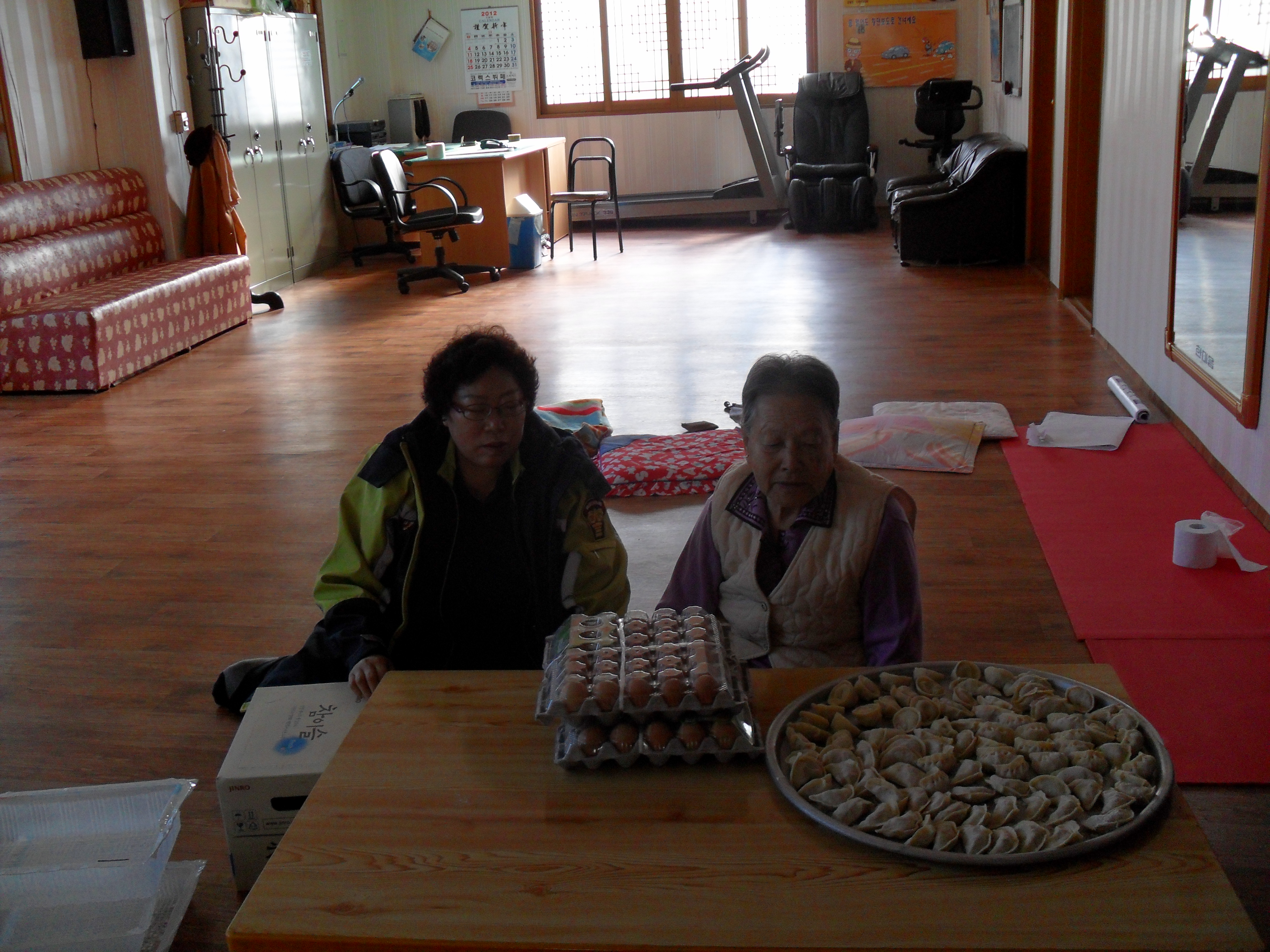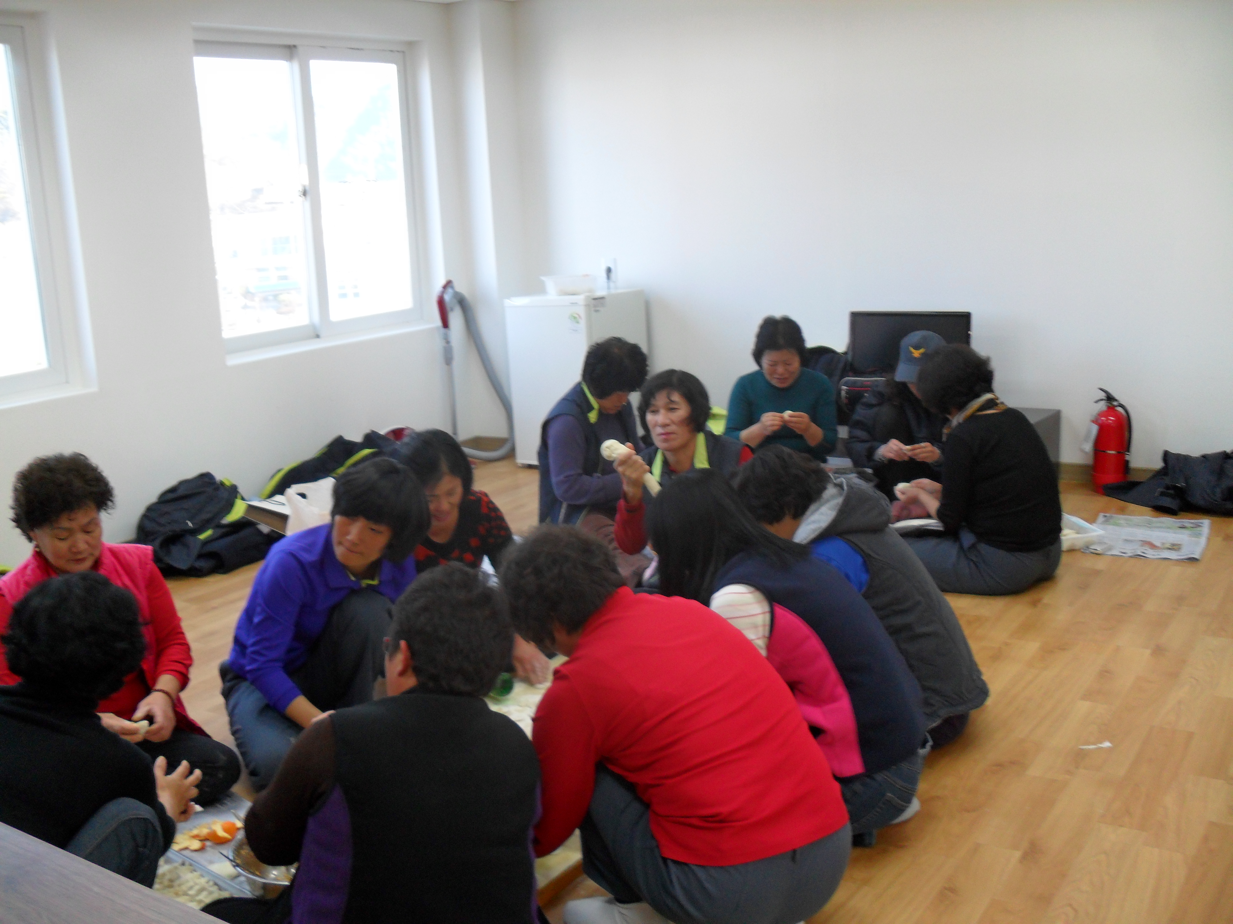 교육을 마친 후 대원들이 만두를 만들어서 홀로 사시는 할머님과 신리 1리 경노당에