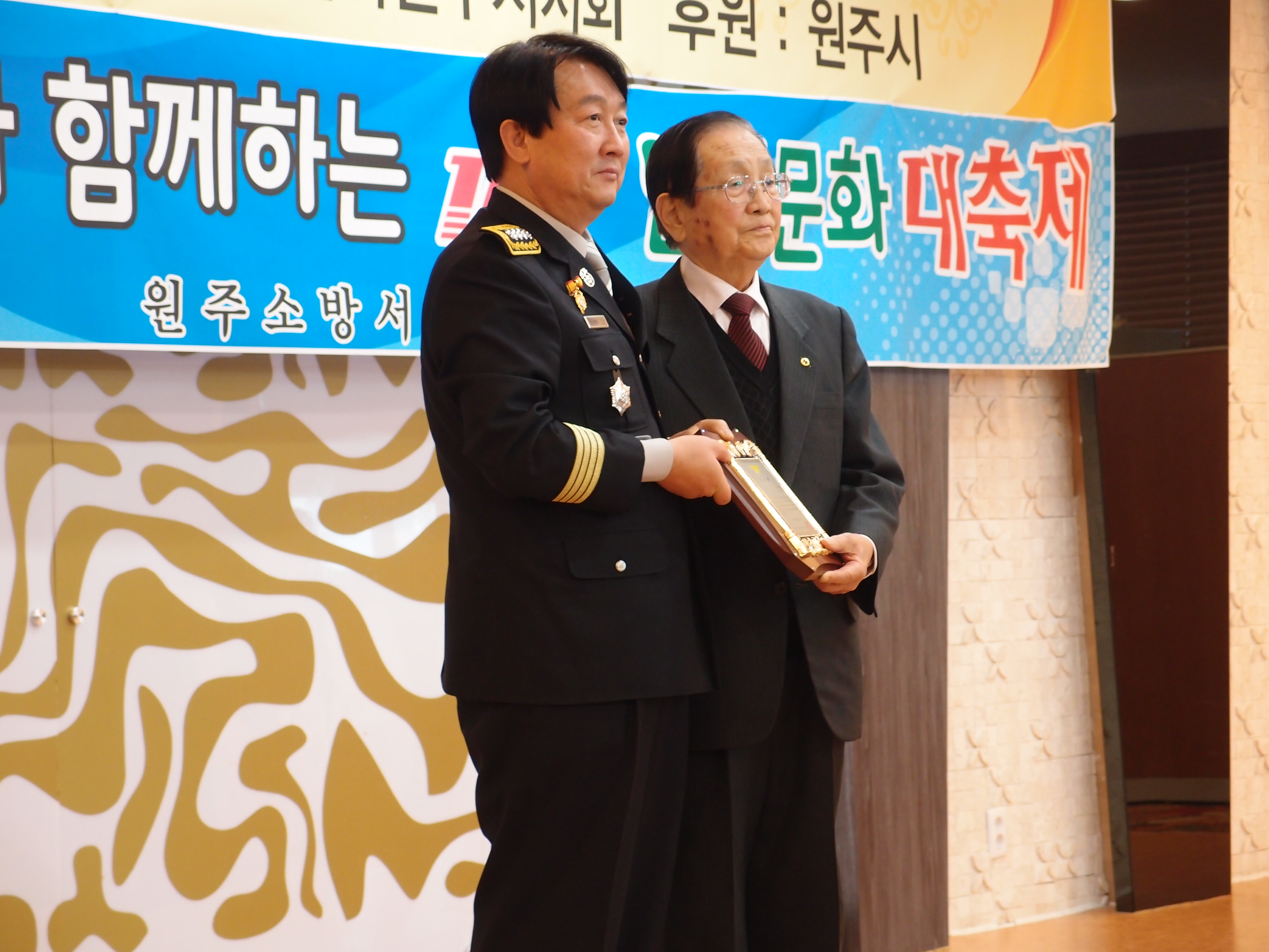 서장님의 참석하심과 원주시 노인회를 이끌어가시는 한영희회장님께 감사패 전달식이