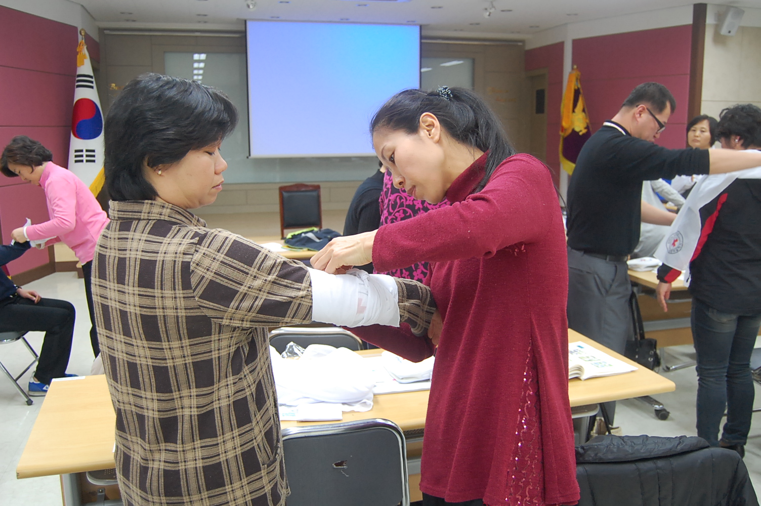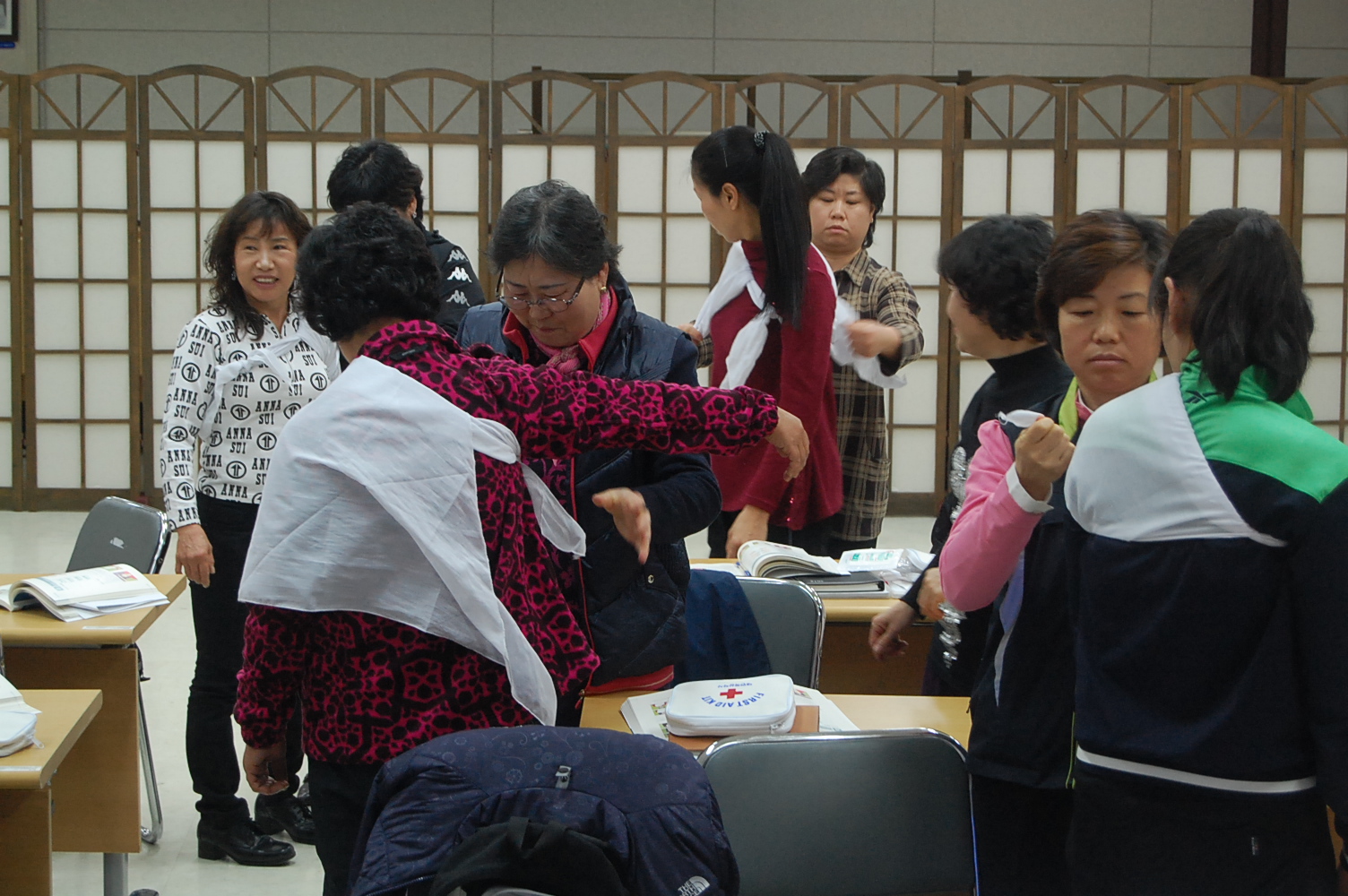 2012년 3월 23일 흥업여성의용소방대(대장 오오석) 총무부장과 홍보부장은 대한적십자사에서 실시한 응급처치법강사 시험에 당당히 합격했습니다.