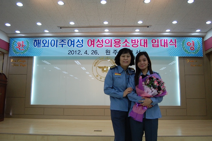 4월26일 원주소방서(서장 김시균) 대회의실에서 해외이주여성 입대식을 치뤘습니다.
