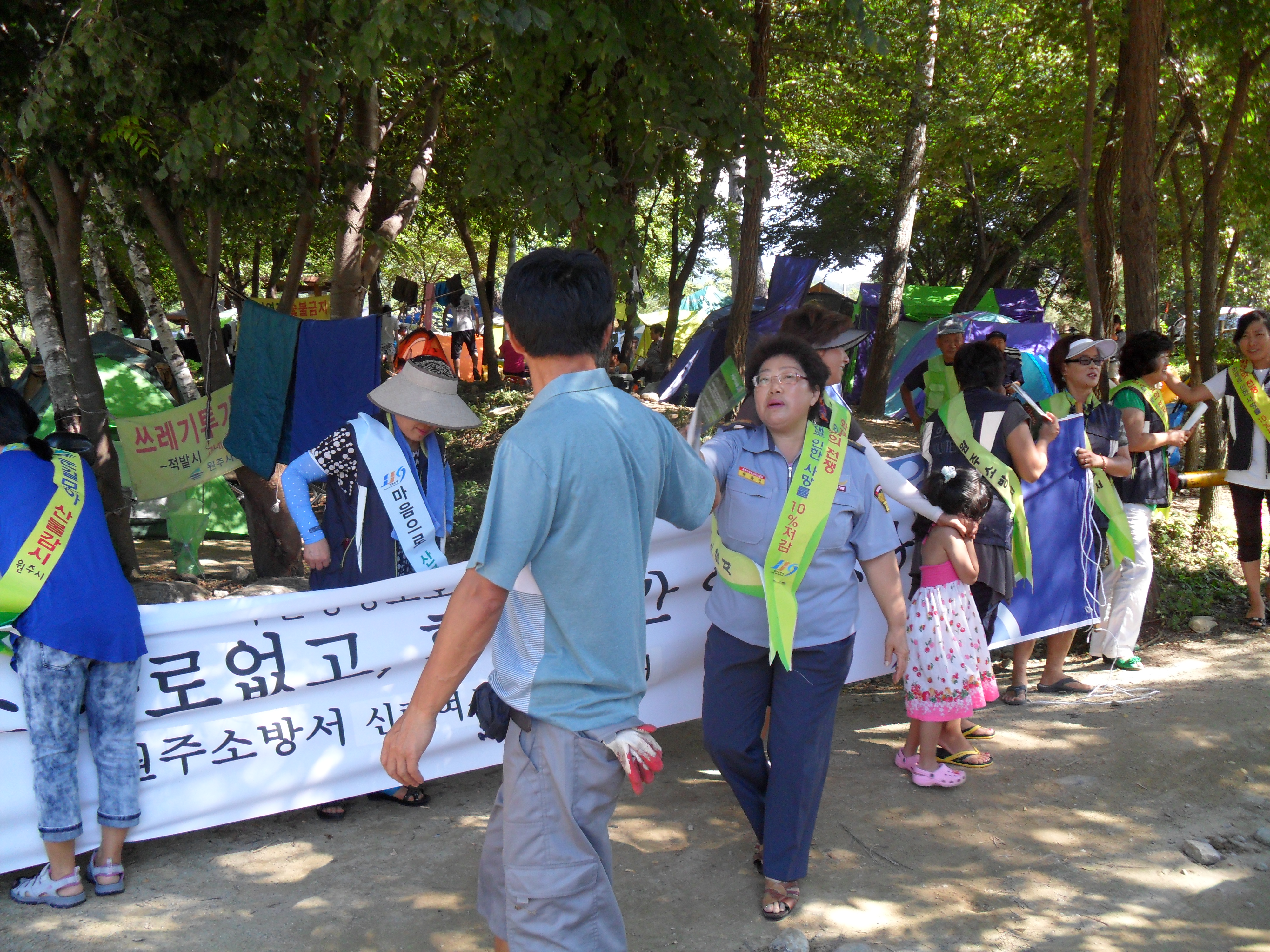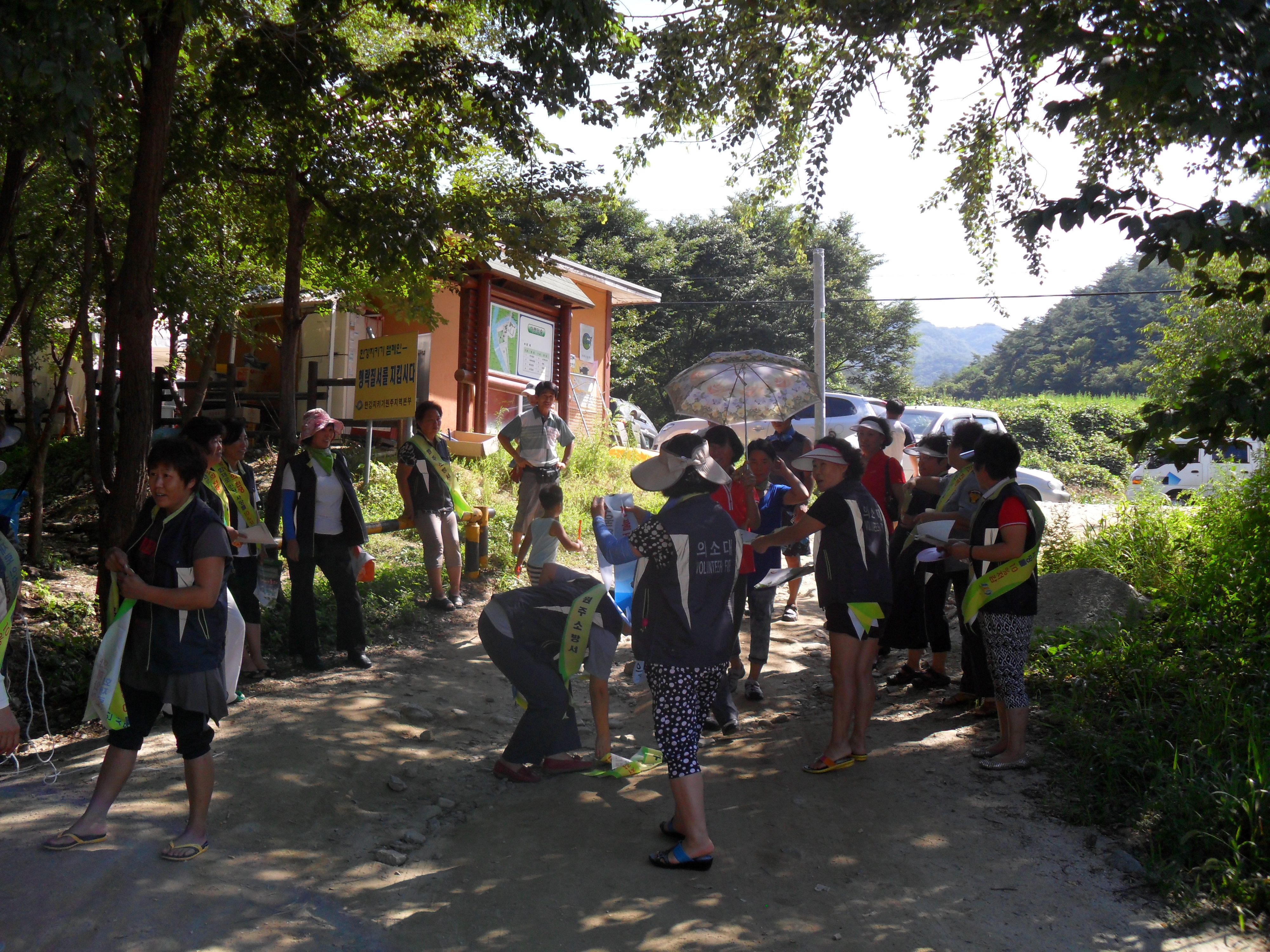성남1리 솔밭유원지에서 8월 정기교육으로 물놀이 안전 캠페인을