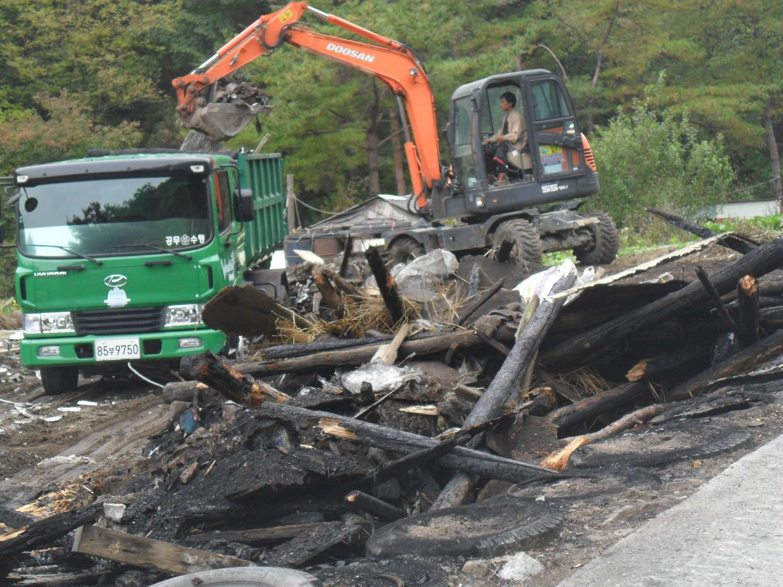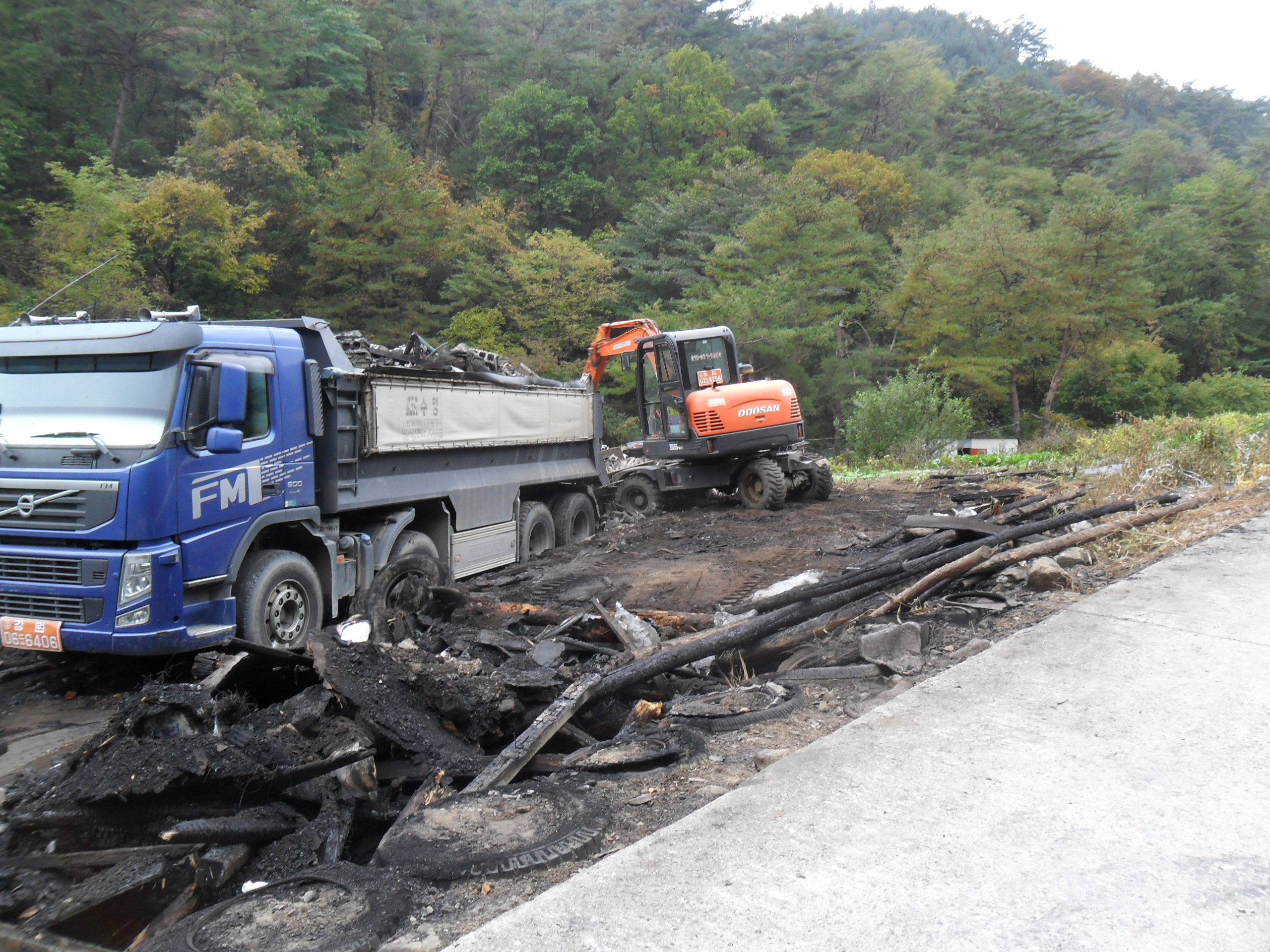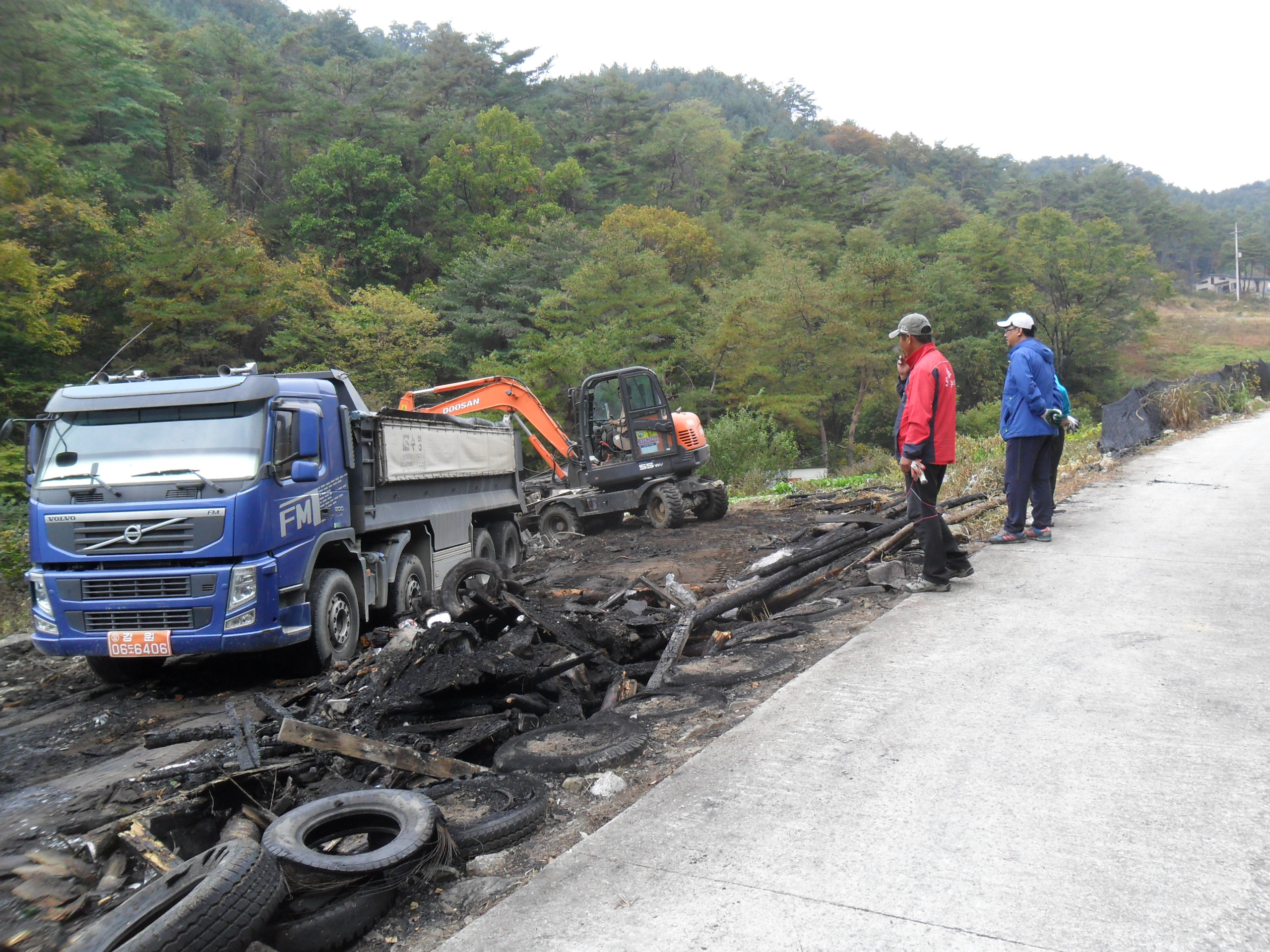 약60톤가량의 혼합폐기물를 처리 하는데 폐기물차량과. 굴삭기를 동원하여 아주깔끔이 청소를 하였습니다.
