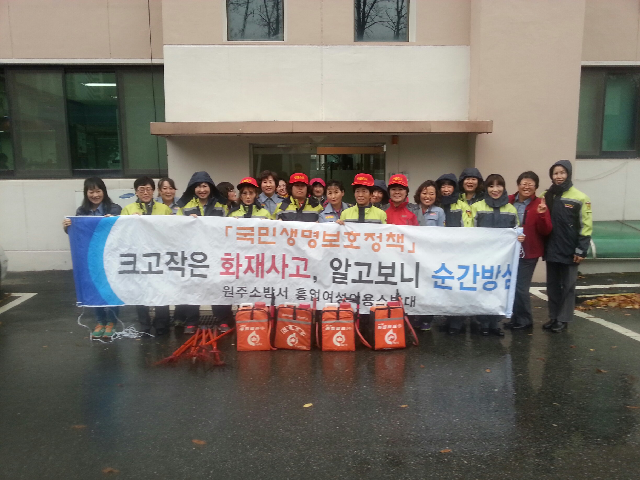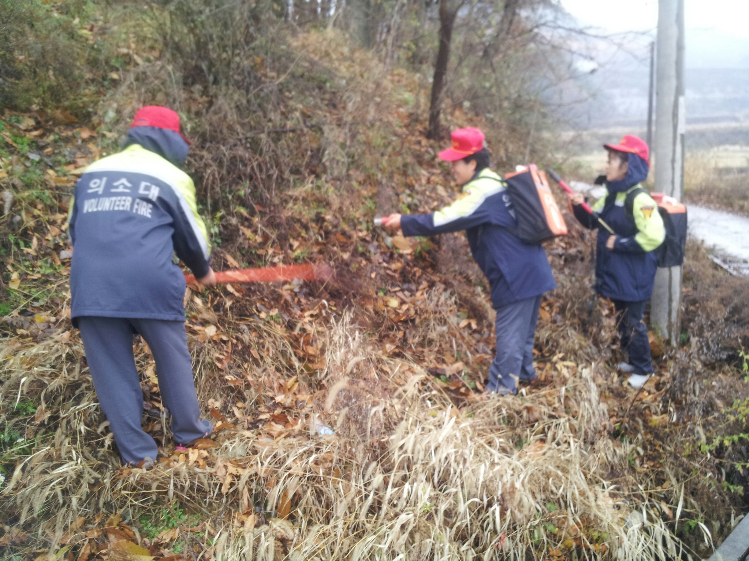 2012년 11월 12일(14:30 ~ 15:30) 흥업여성의용소방대(대장 오오석외 22명)는 국민생명보호정책의 일환으로 화재예방 캠페인과 더불어 산불진화시 불씨가 살아나는 것을 방지하기 위한 잔불정리 훈련을 실시하였습니다.
