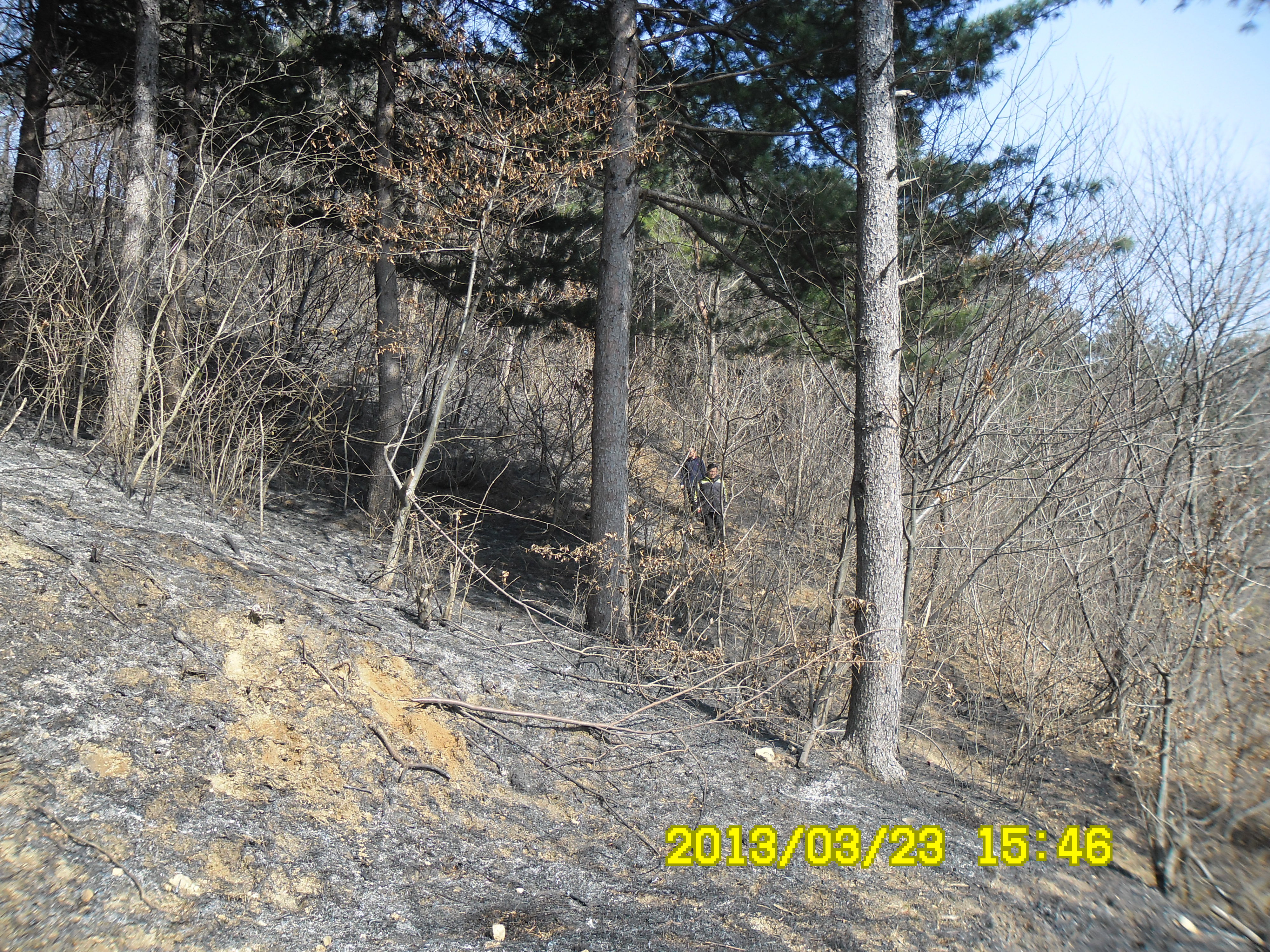 2013년 3월 23일 15시경 안창 부림목재뒤편 야산에 불이 났습니다.