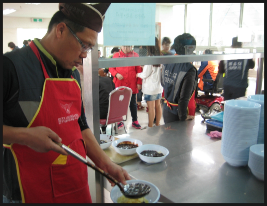 원주의용소방대(대장 조성일),원주여성의용소방대(대장 박명자)는 3월19일 대원 35명이 참가하여 단구동 장애인 복지관에서 150명에게 자장면 중식을 제공했습니다