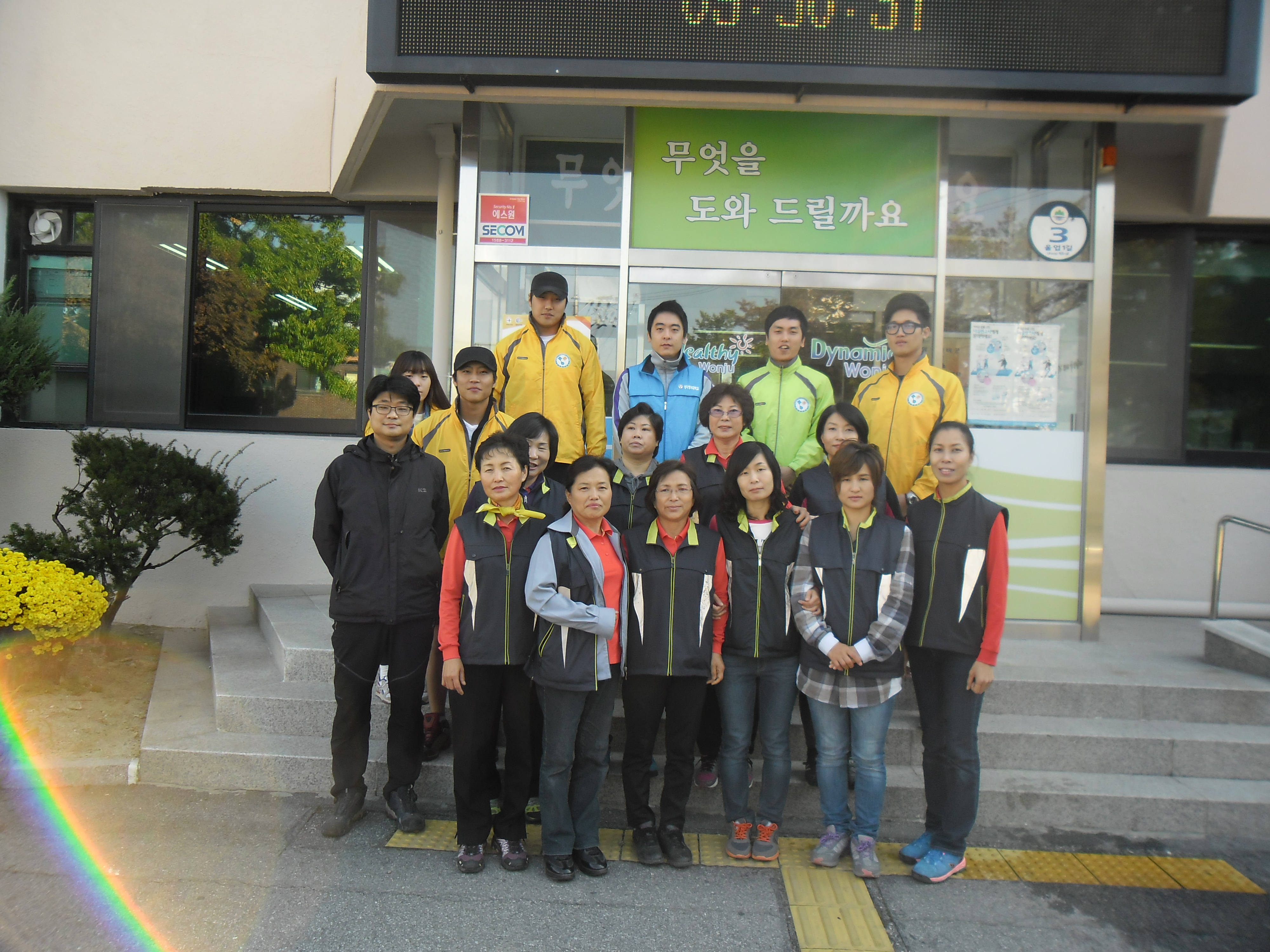 저희 흥업 여성 의용 소방대는 상지대 소방학과 봉사동아리 학생들( 10명)과
