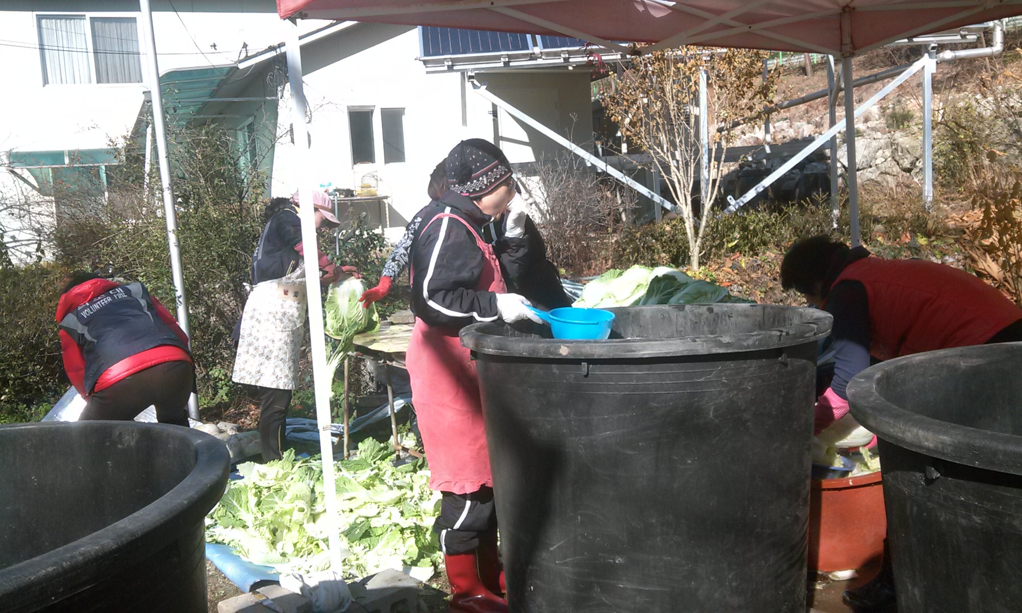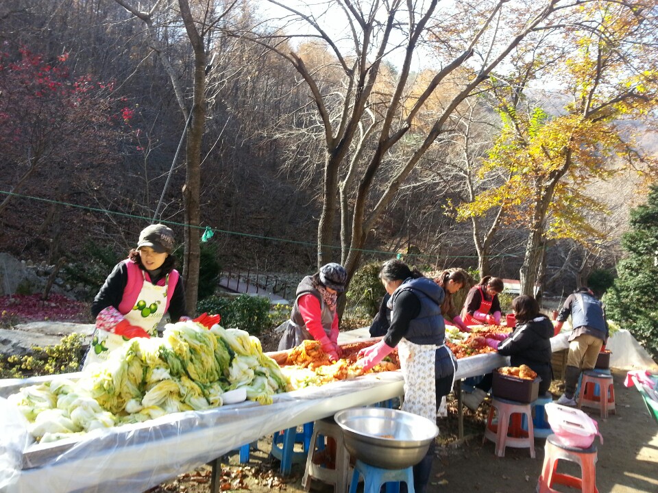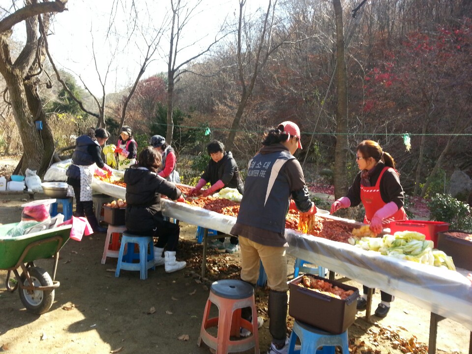 대장님을 비롯하여 첫날은 배추를 소금에 절이는 작업을 하였고 둘째날은 절인배추에 속을 넣는 작업을 하였습니다. 많은 김치를 하려니 힘도 들었지만 평심원 어르신들이 드실 생각을 하니 그리고 여럿이 모여 함께하니 즐겁게 봉사할수 있었습니다.