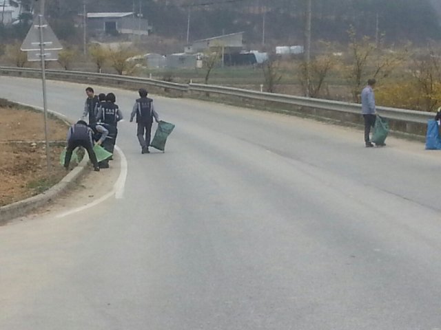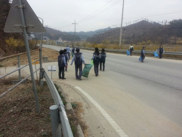 캠페인을 마치고 등산로 주변과 도로주변의 쓰레기 줍기 봉사 활동을 하였습니다.