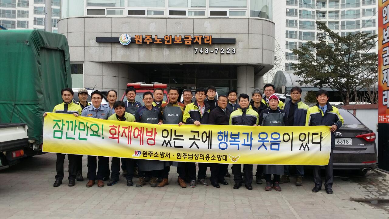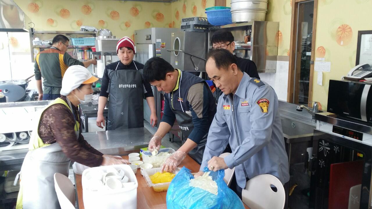 원주의용소방대(대장 조성일)는 3월17일 원주보금자리에서 자장면 중식봉사를 30명의 대원이 참가하여 실시했으며, 봉사후 3월정기교육도 실시했습니다