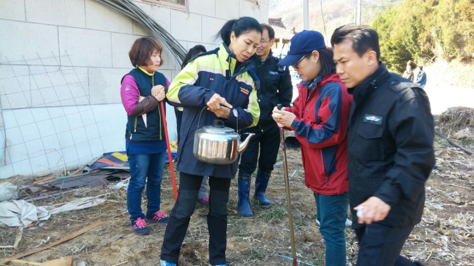 이은희대장님과 대원들이출동 하여 화재진압보조역할및 잔불정리 소방대원의 노고를 감사드리고