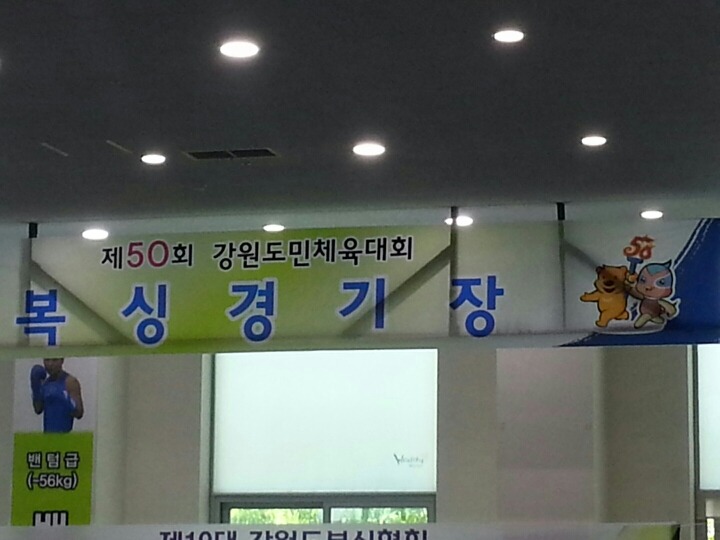 2015년 6월12일 금요일 강원도민체전 엘리트체육관 복싱경기장에 자원봉사 다녀왔읍니다 더운 날씨에 고생 많이 하셨어요
