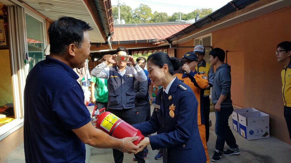 노인가구, 장애인, 등 취약 가정을 방문하여 소화기 전달 및